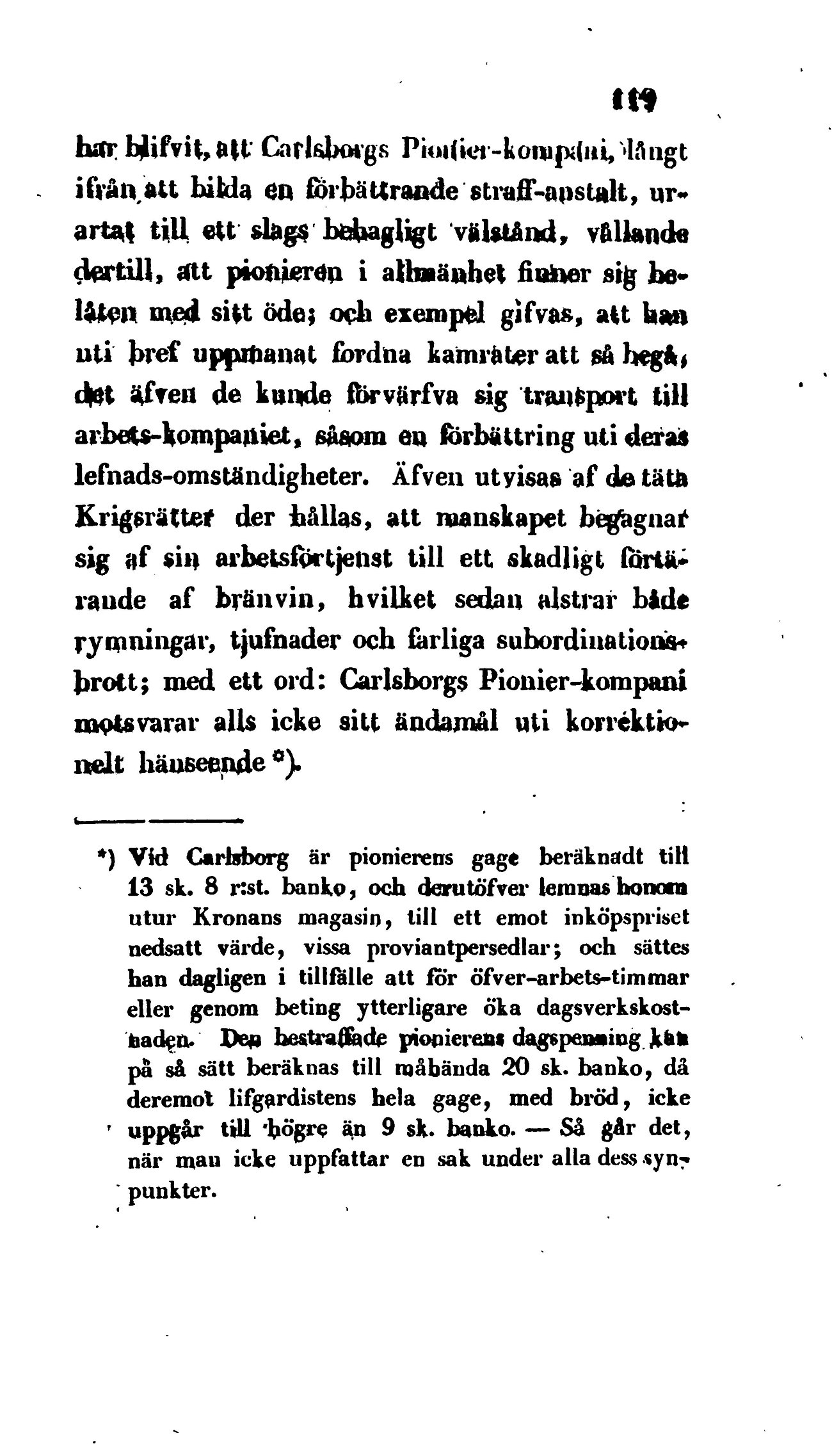*) Vid Carfaborg är pionierens gage beräknadt till