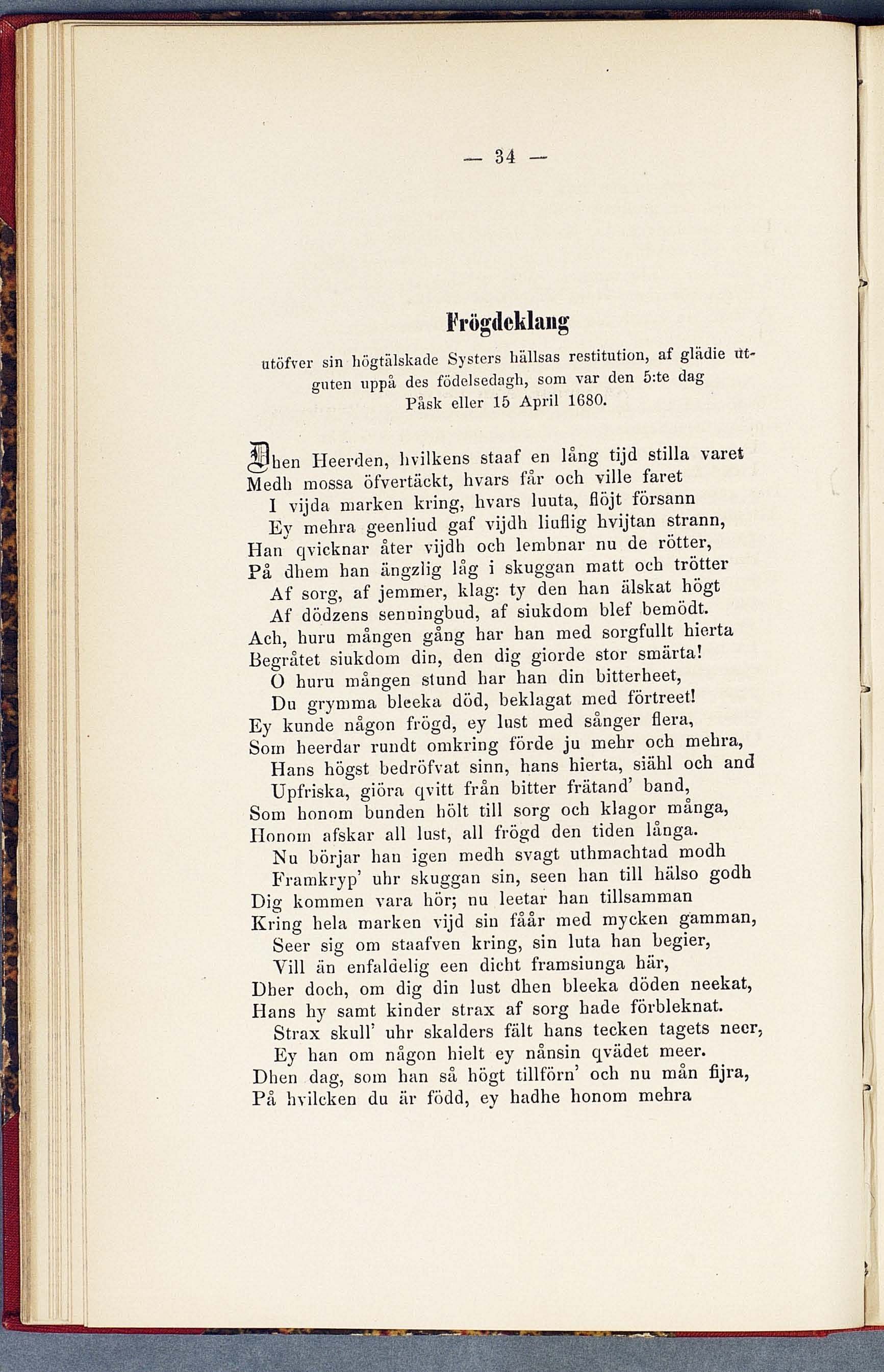 utöfver sin högtälskade Systers liällsas restitution, af glädie