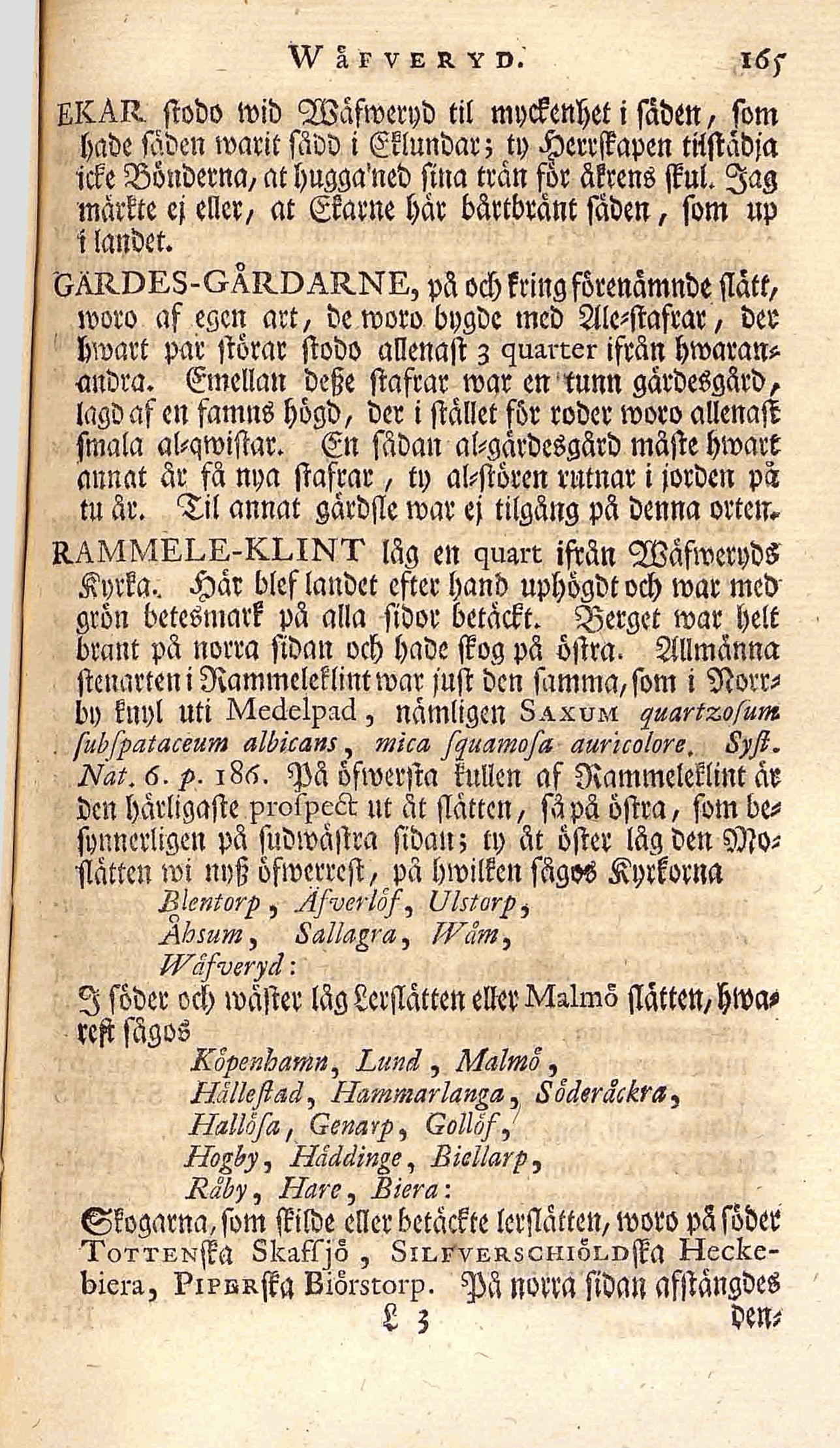 - Project Runeberg -  Carl Linnæi Skånska resa, på höga öfwerhetens befallning förrättad år 1749. Med rön och anmärkningar uti oeconomien, naturalier, antiquiteter, seder, lefnads-sätt /