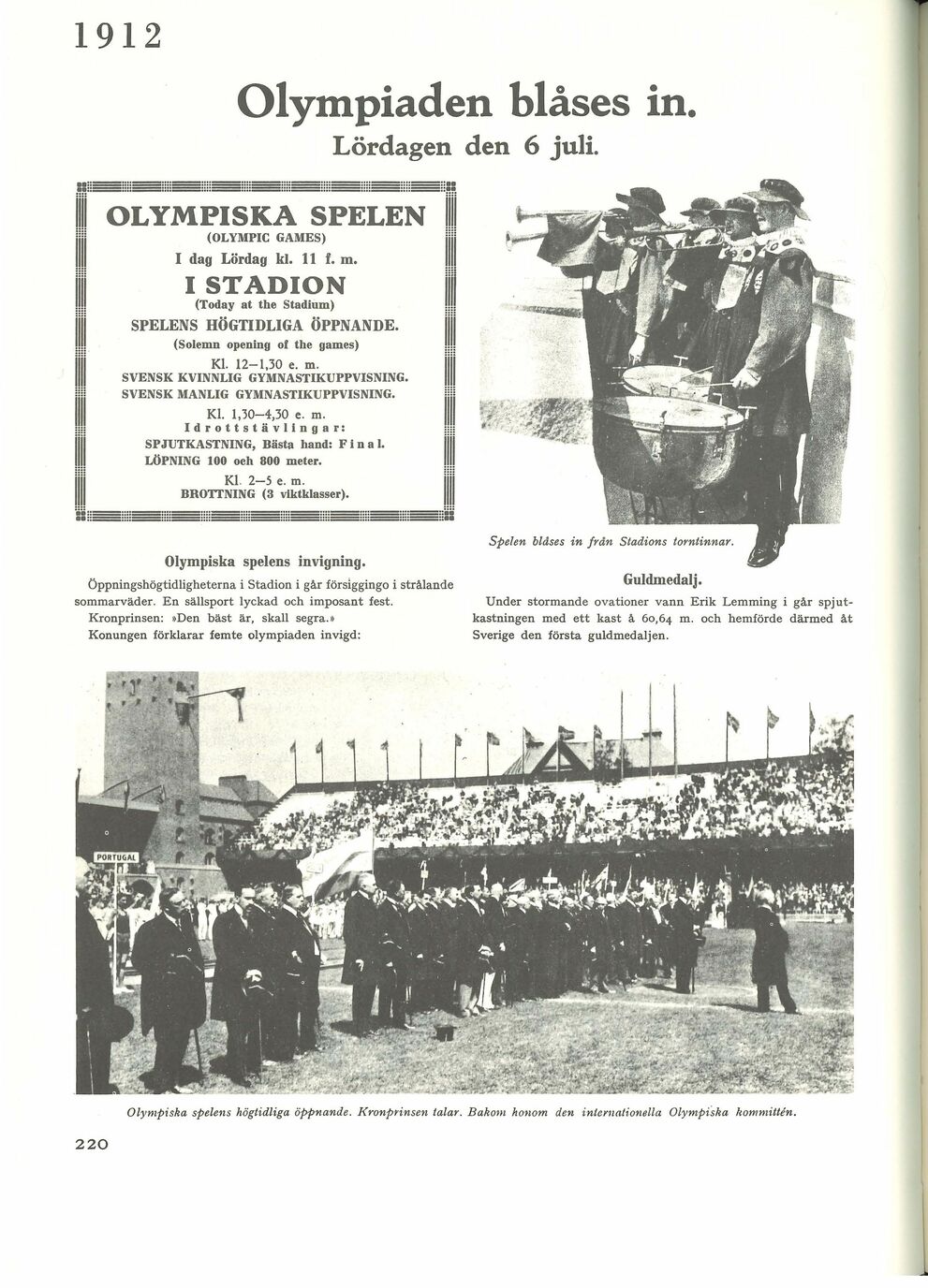 Konungen förklarar femte olympiaden invigd: Sverige den första guldmedaljen.
