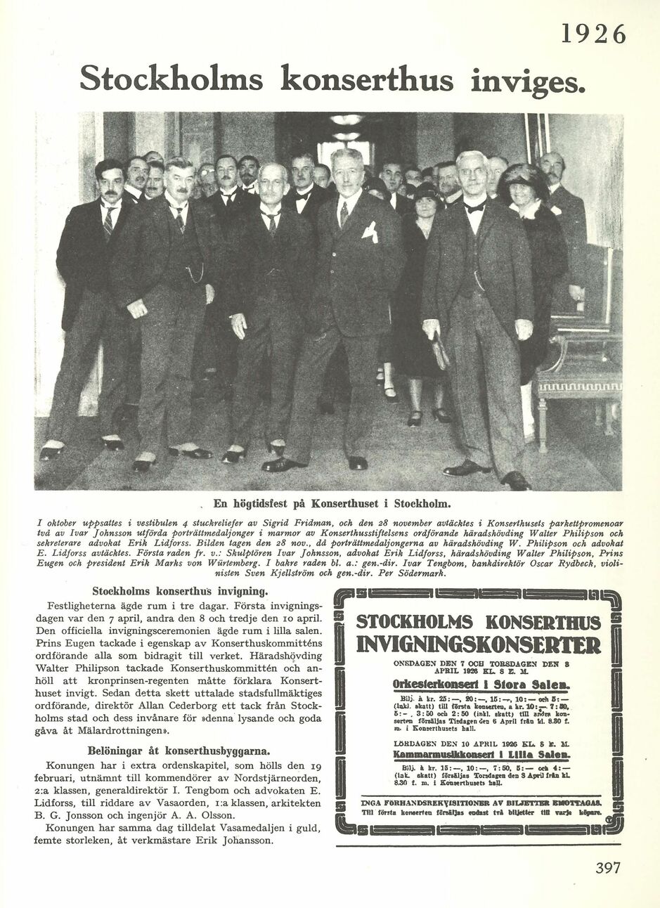 Konserthuset invigt. Sedan detta skett uttalade stadsfullmäktiges