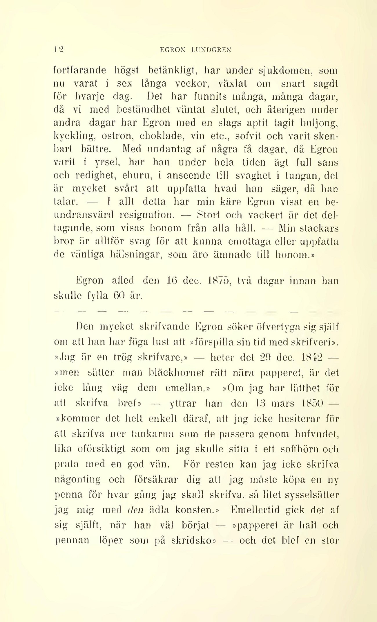 Egron afled den 1(5 dec. 1875, två dagar innan han