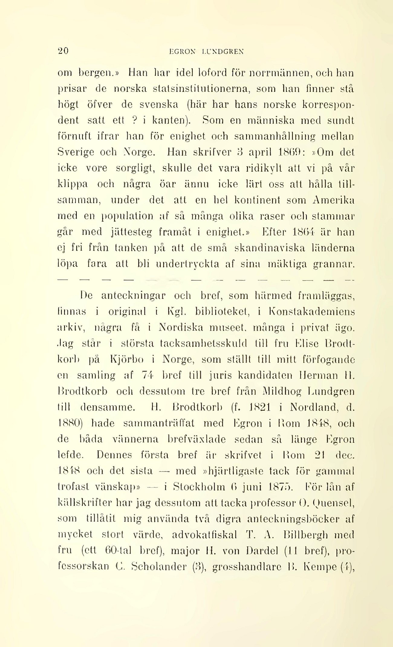 Sverige och Norge. Han skrifver 3 april 18(59: »Om det