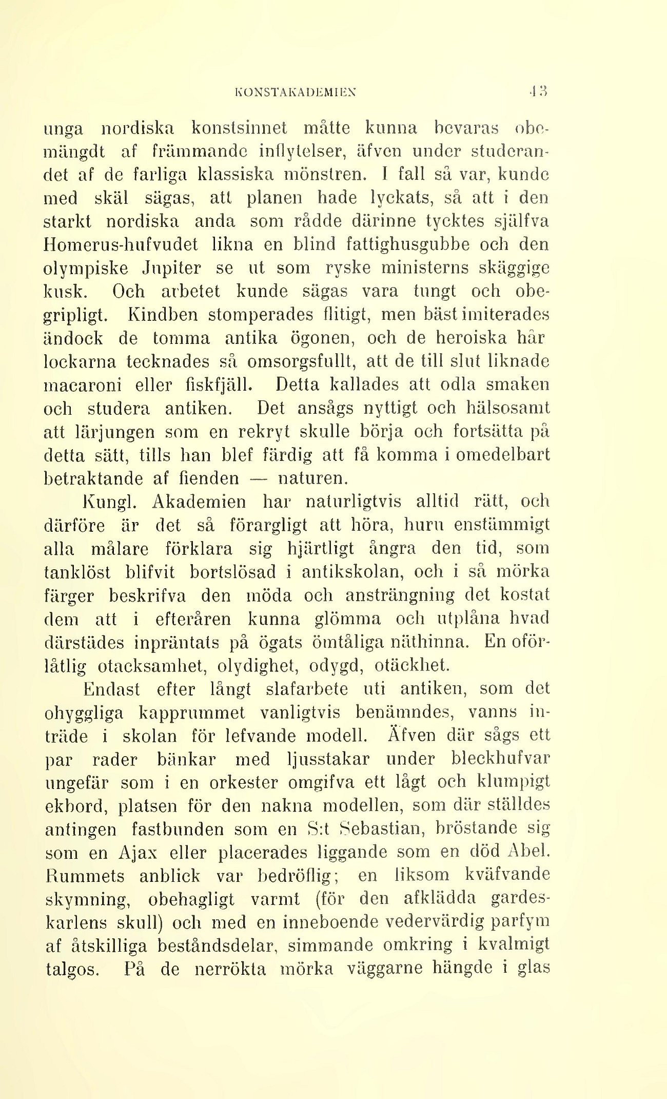inträde i skolan för lefvande modell. Äfven där sågs ett