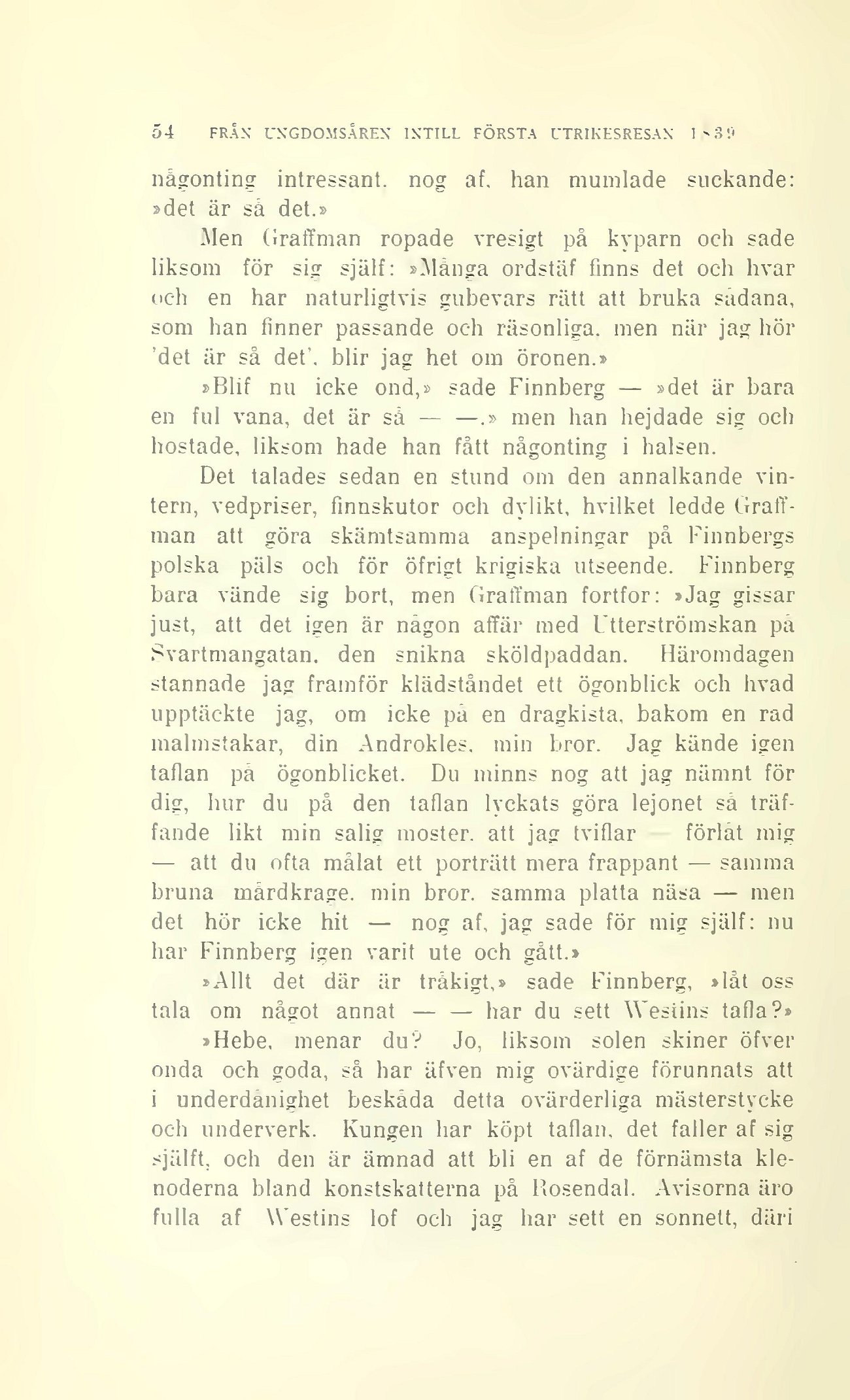 »Allt det där är tråkigt,» sade Finnberg, »låt oss