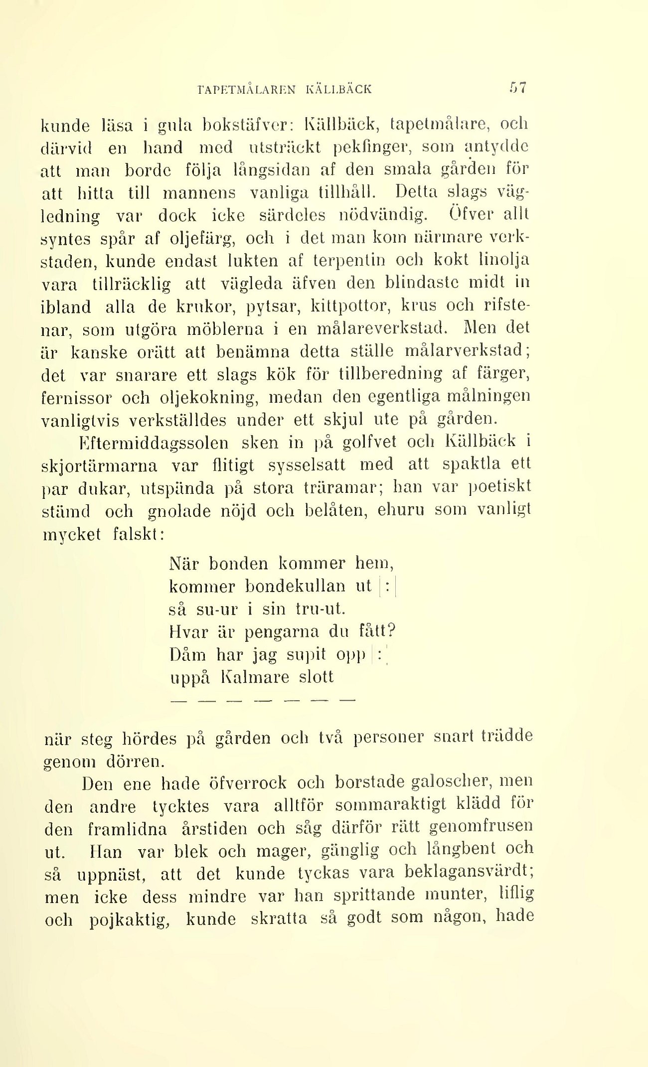 kunde läsa i gula bokstäfver: Källbäck, tapetmålare, och
