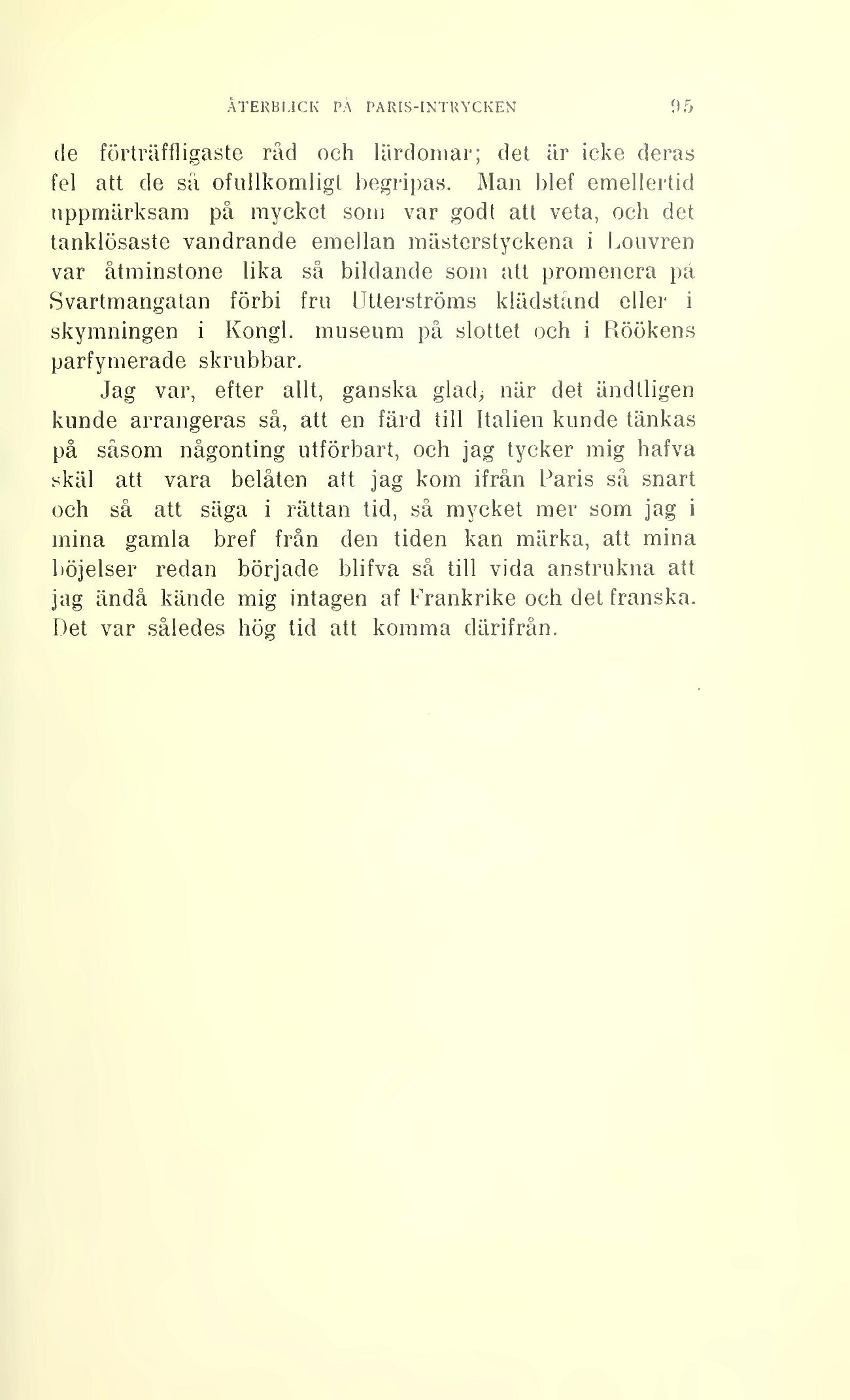 skäl att vara belåten att jag kom ifrån Paris så snart
