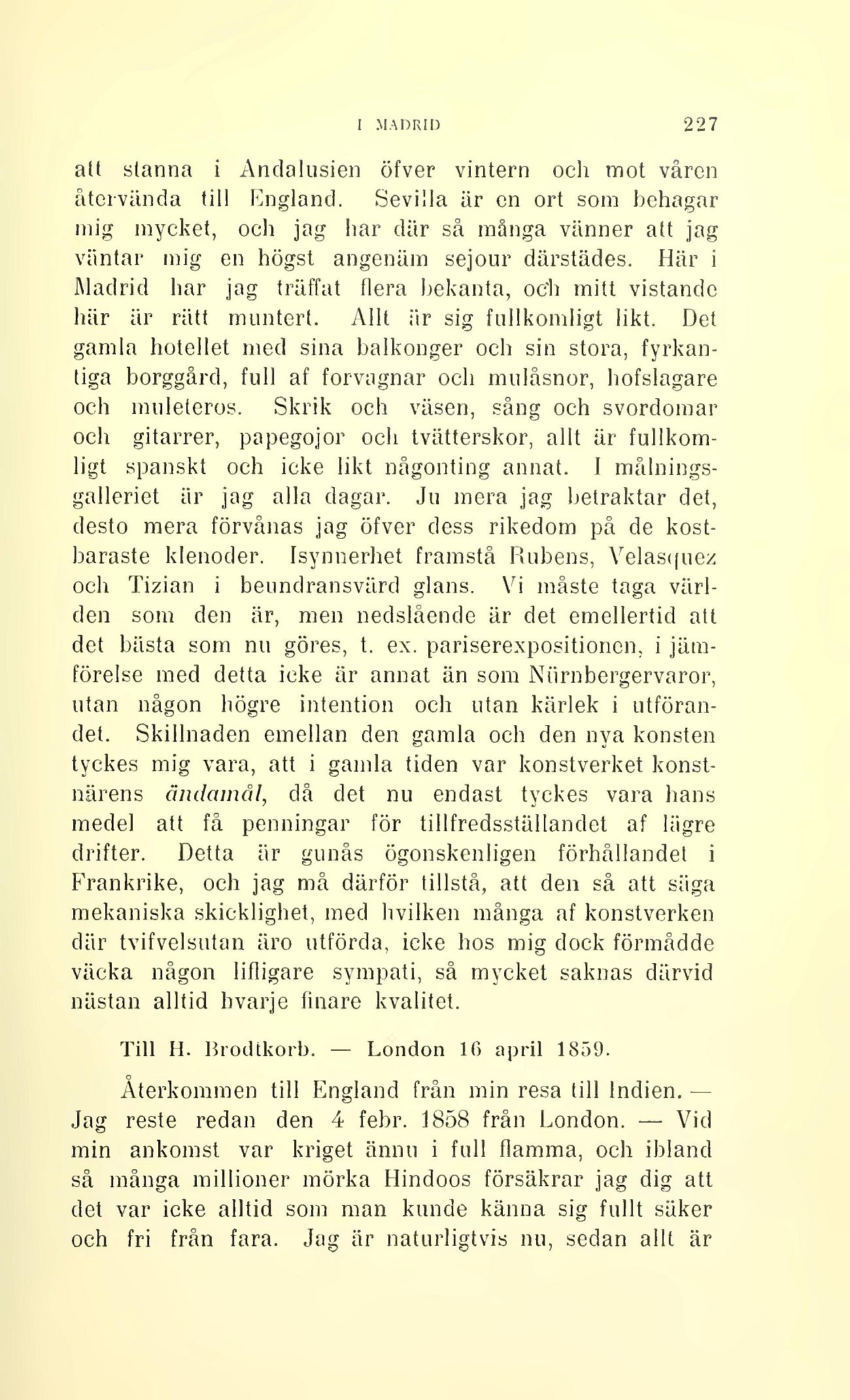 Jag reste redan den 4 febr. 1858 från London. — Vid