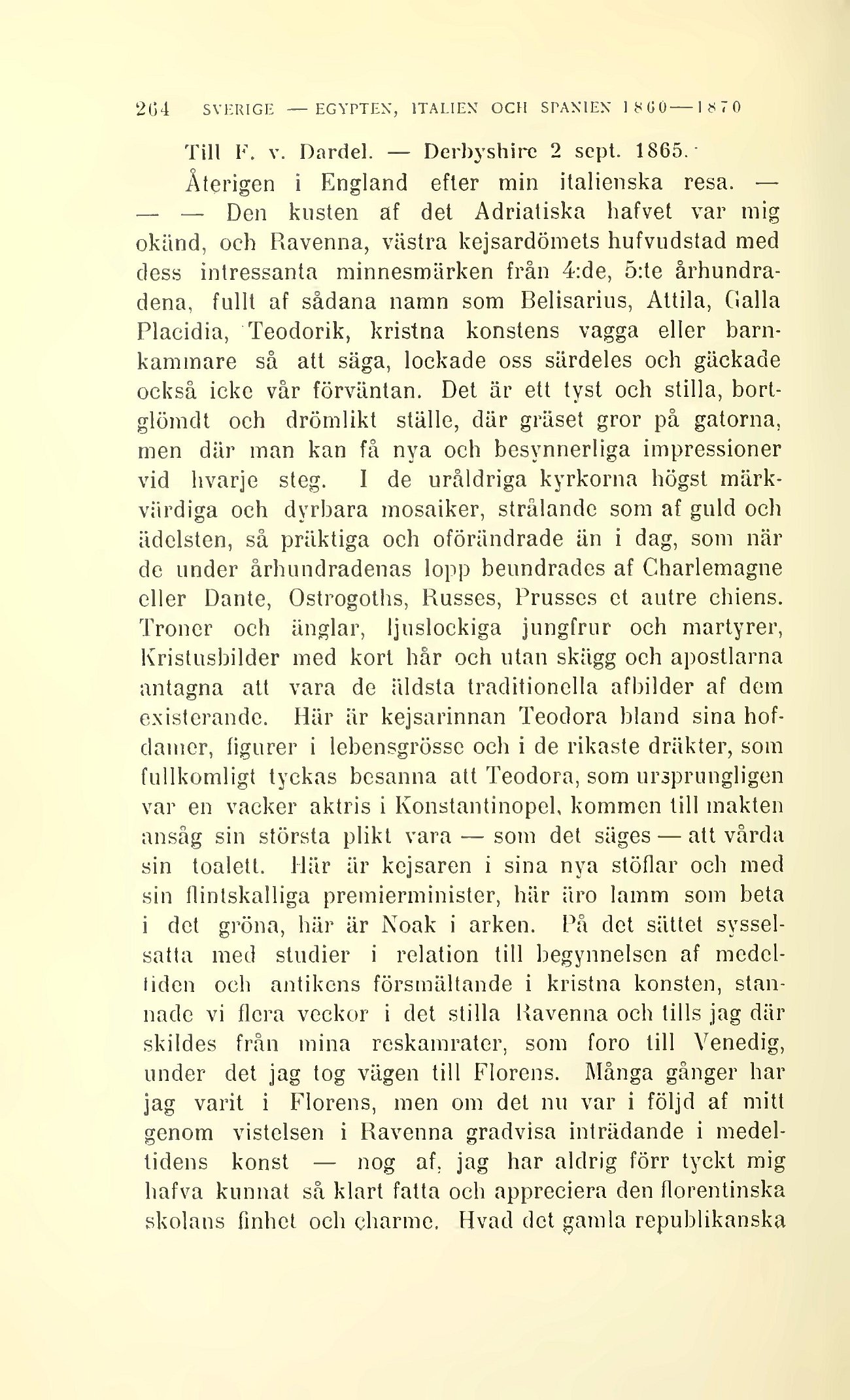 Till F. v. Dardel. — Derbyshirc 2 sept. 1865.’