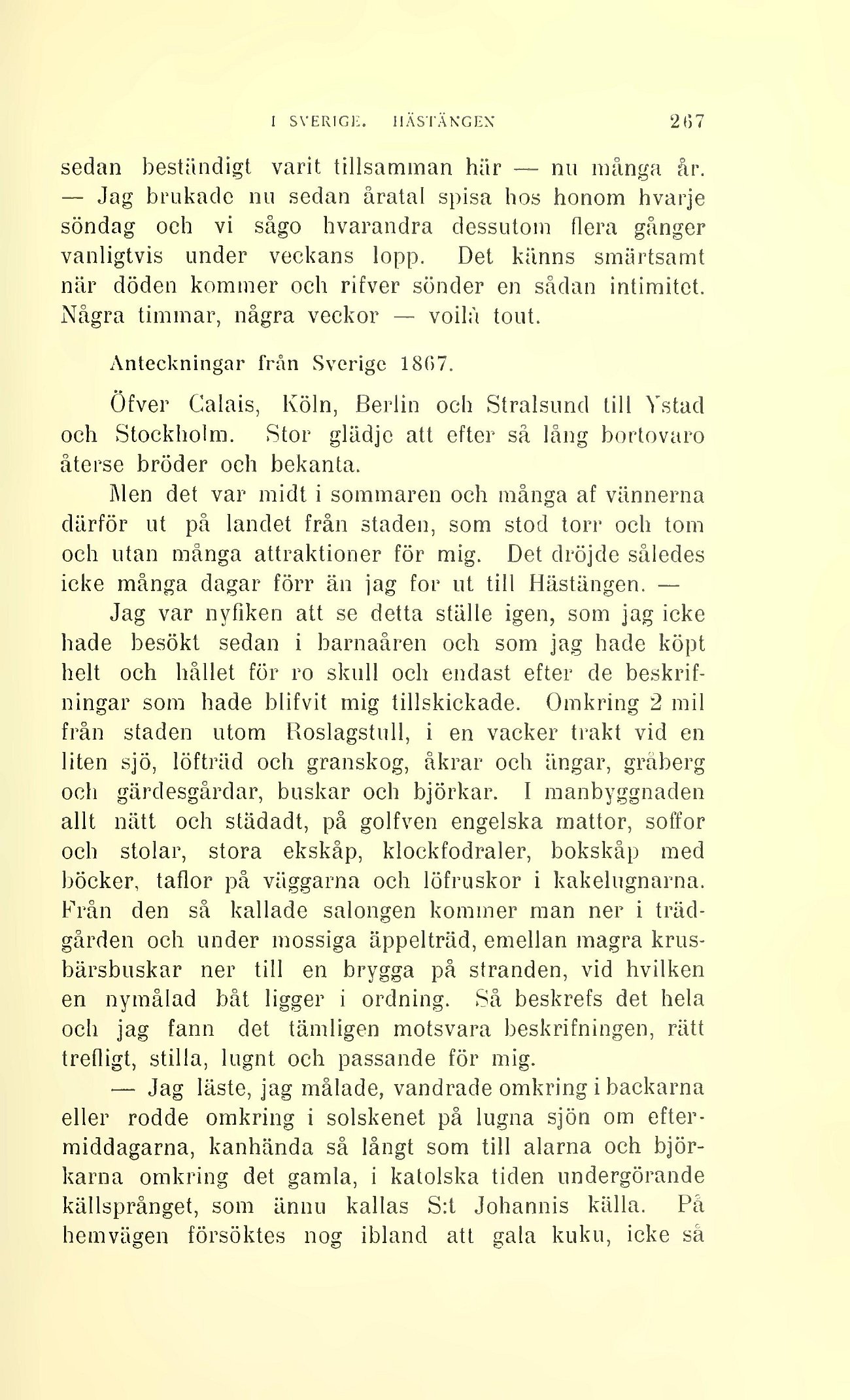icke många dagar förr än jag for ut till Hästängen. —