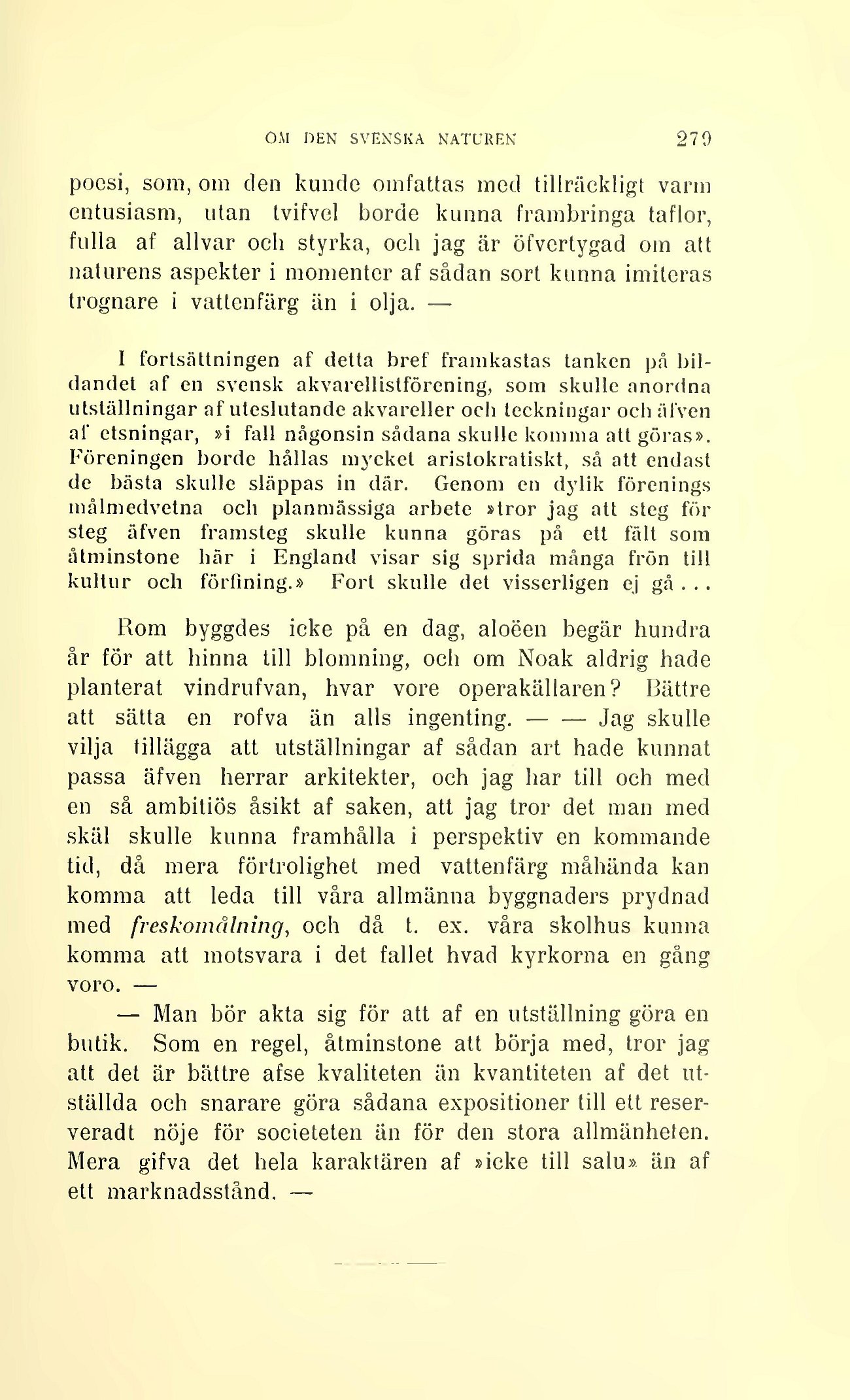 bildandet af en svensk akvarellistförening, som skulle anordna