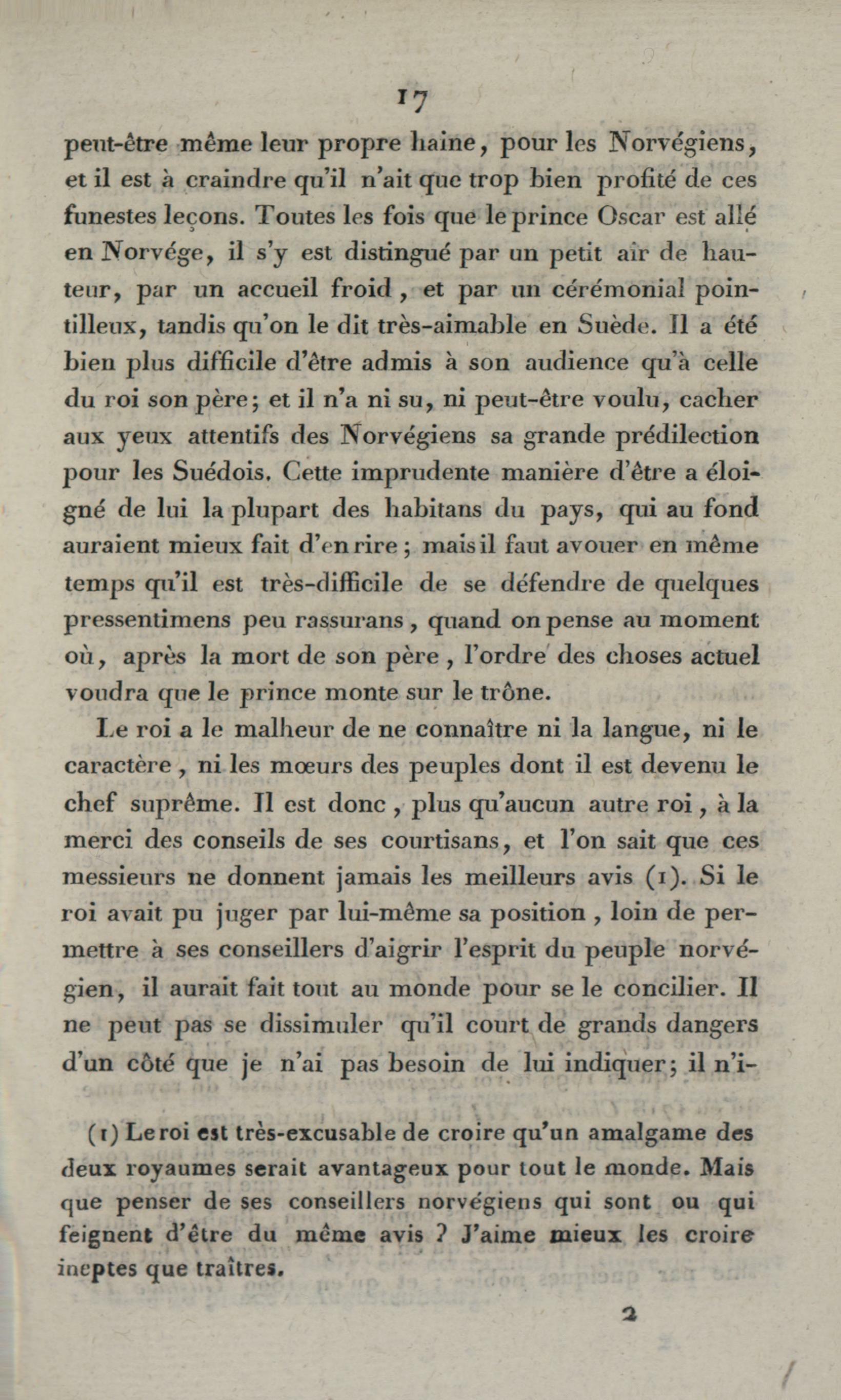 peut-érre méme leur propre liaine, pour les Norvégiens,
