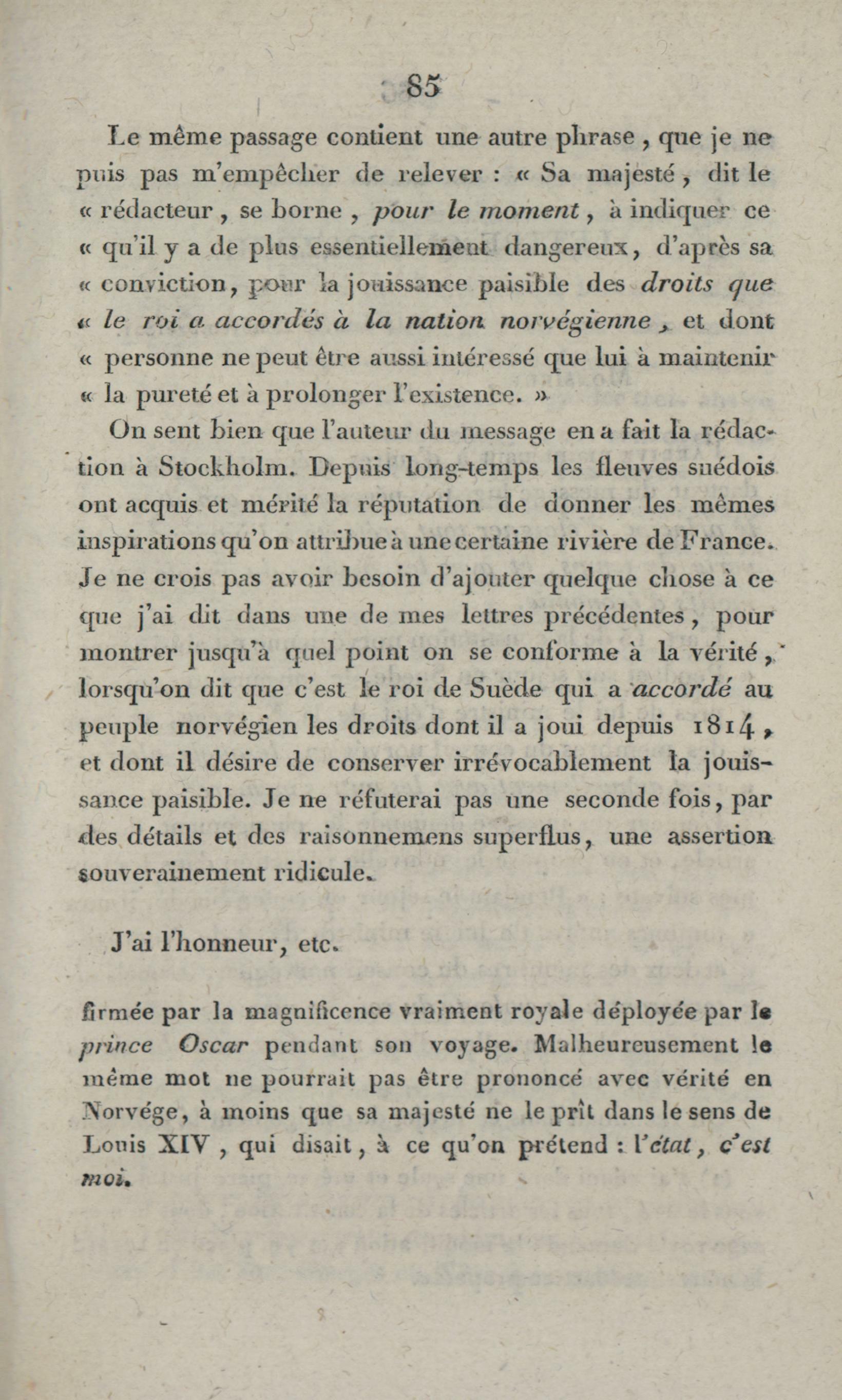Norve’ge, a moms que sa niajesté ne le prit dans le sens de