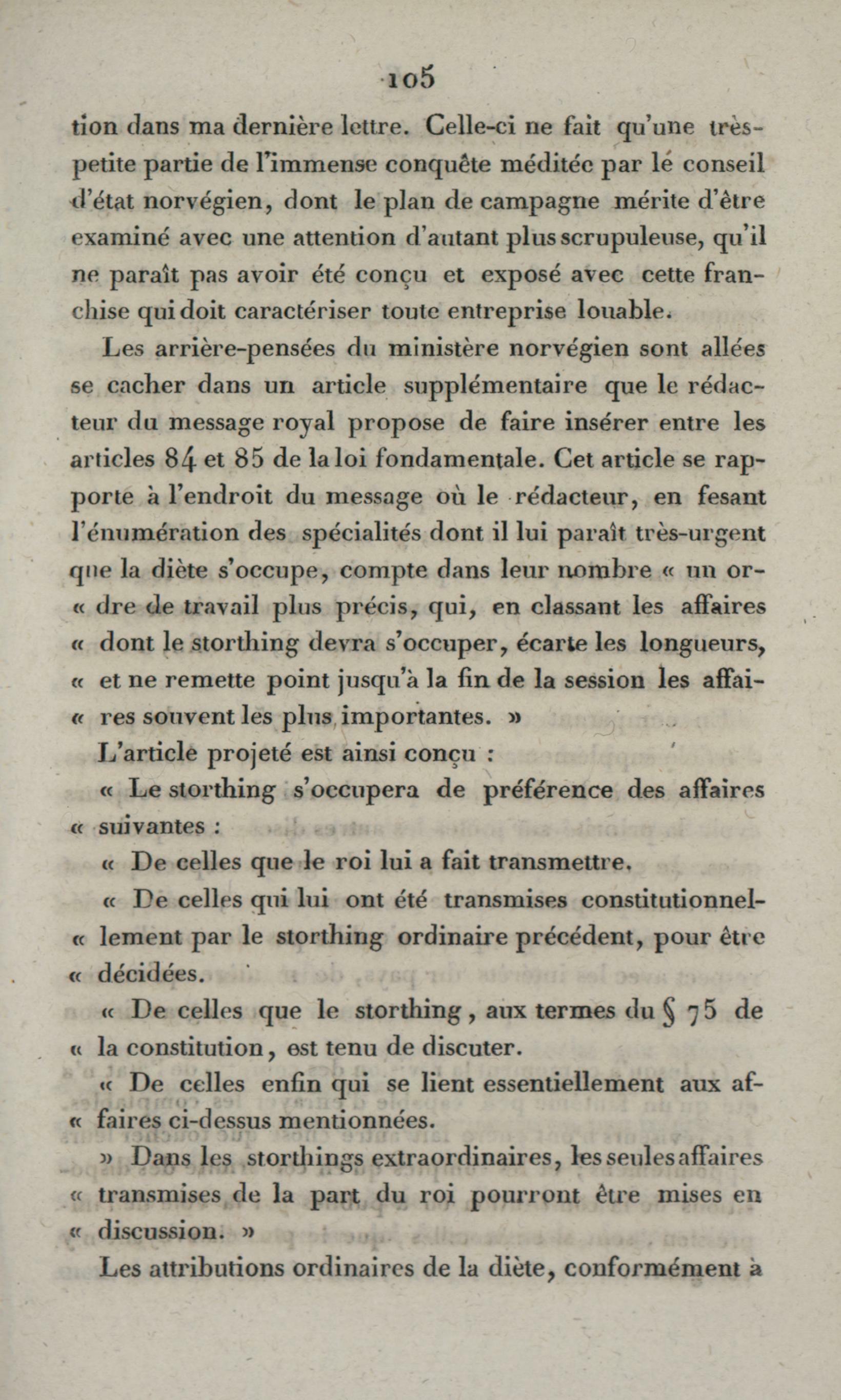 « dont le storthing devra s’occuper? écarte les longueurs,