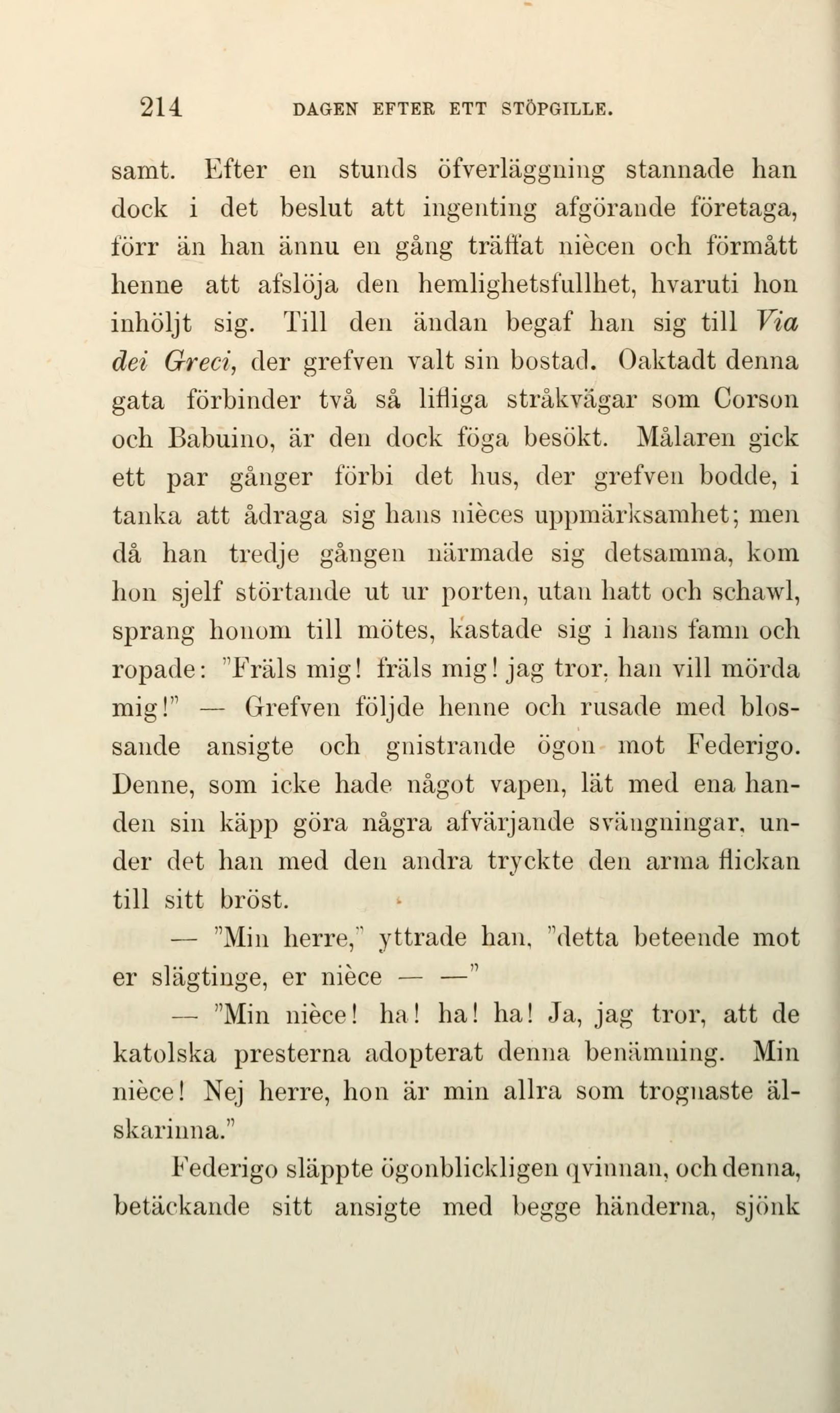 Federigo släppte ögonblickligen qvinnan, och denna,