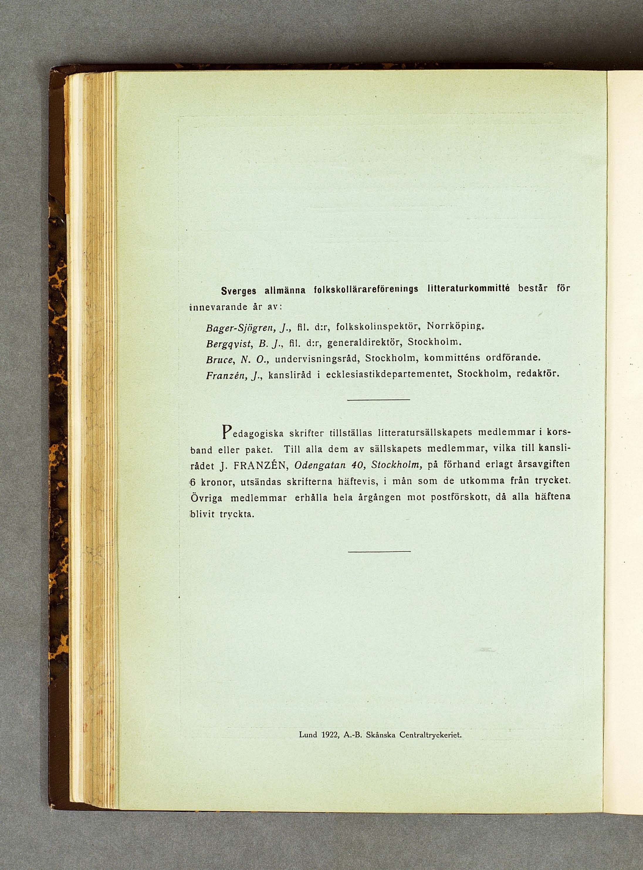 Lund 1922, A.-B. Skånska Centraltryckcriet.