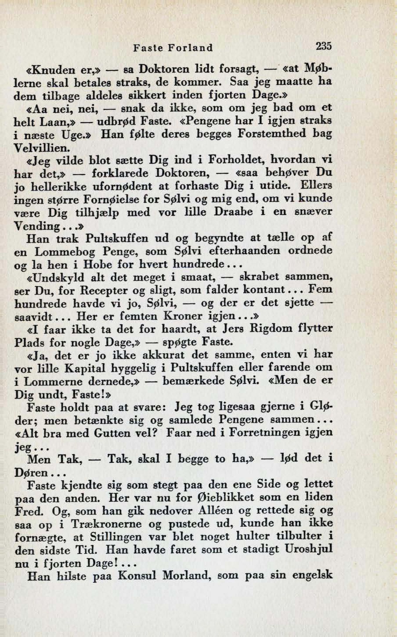 helt Laan,» — udbrød Faste. «Pengene har I igjen straks