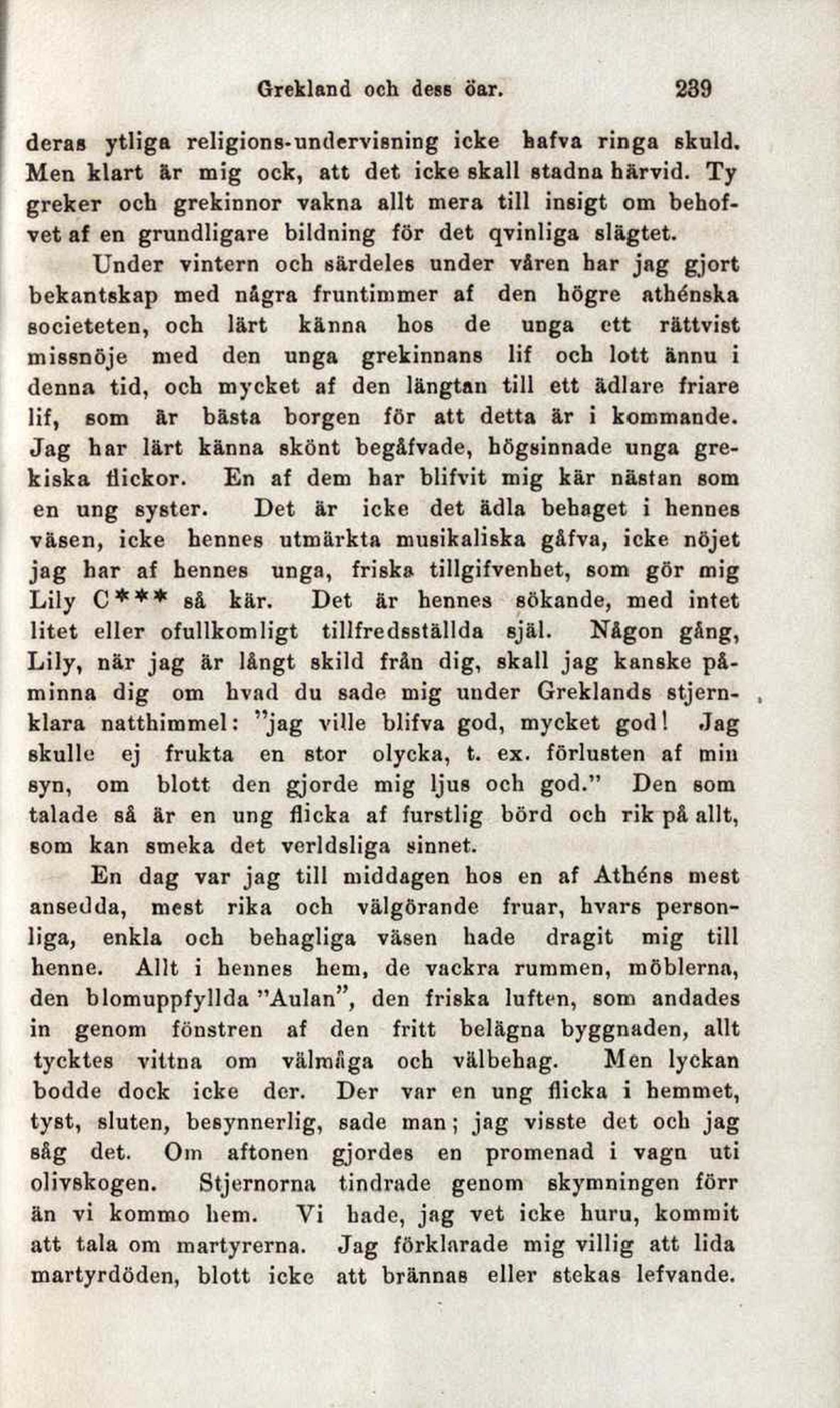 Full resolution (JPEG) - On this page / på denna sida - 37. En ny Corinna. En elev af M:me Recamier, Eleusis’ och dess mysterier. Examen i Arsakion. Amalion. Unga grekinnor. Morgonväkter. Tyska vänner. Massackrerna i Syrien. Greklands deltagande. Kung Ottos gästfrihet. Samtal med drottningen. Grefvinnan Dora d’Istria. Athén under Juni månad. Afresa till öarne
