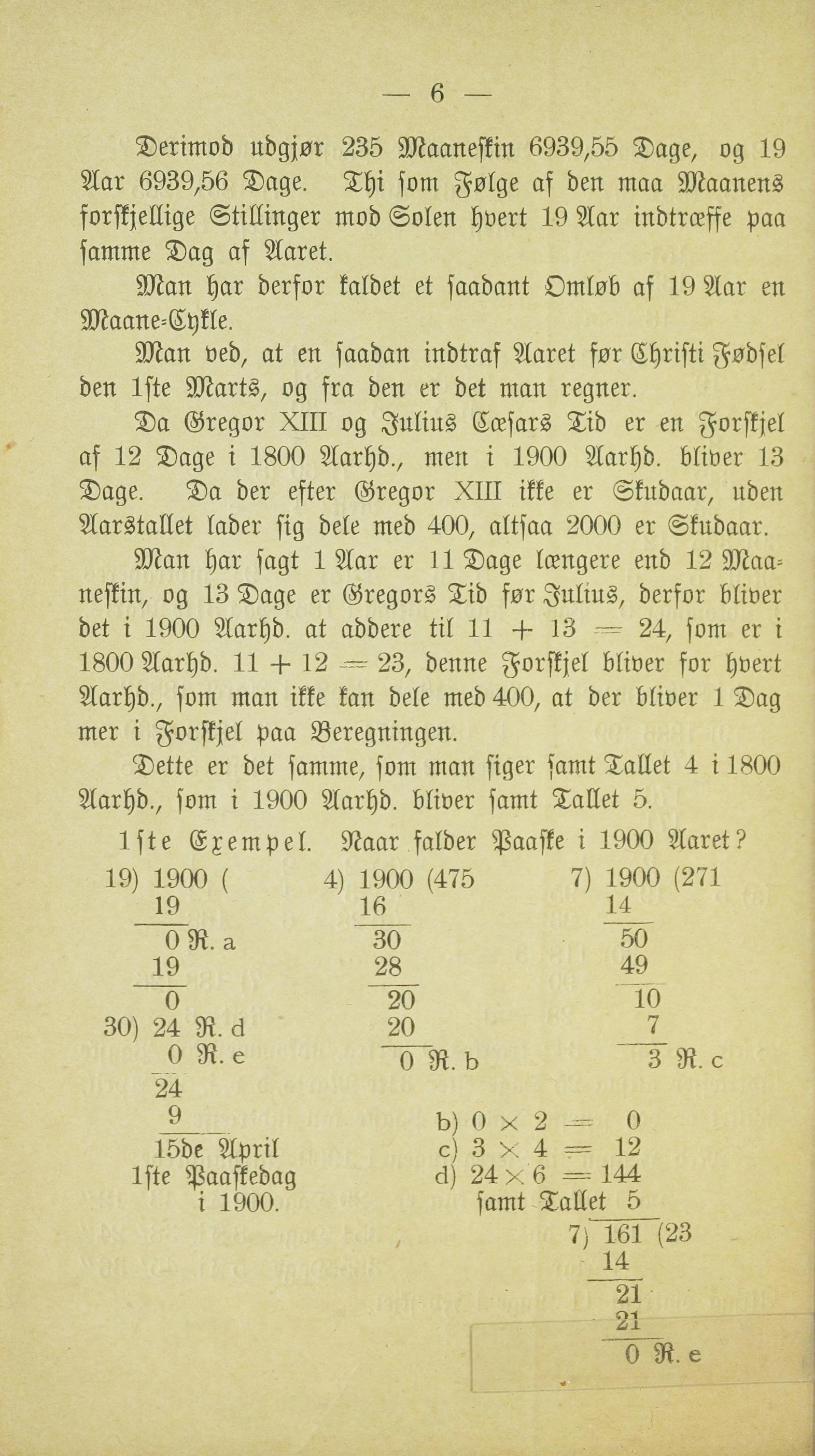 1ste Exempel. Naar falder Paaske i 1900 Aaret?