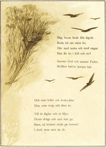 Säg, hvem lärde lilla fågeln Samme Gud och samme Fader, Vill åt fåglar och åt liljor |