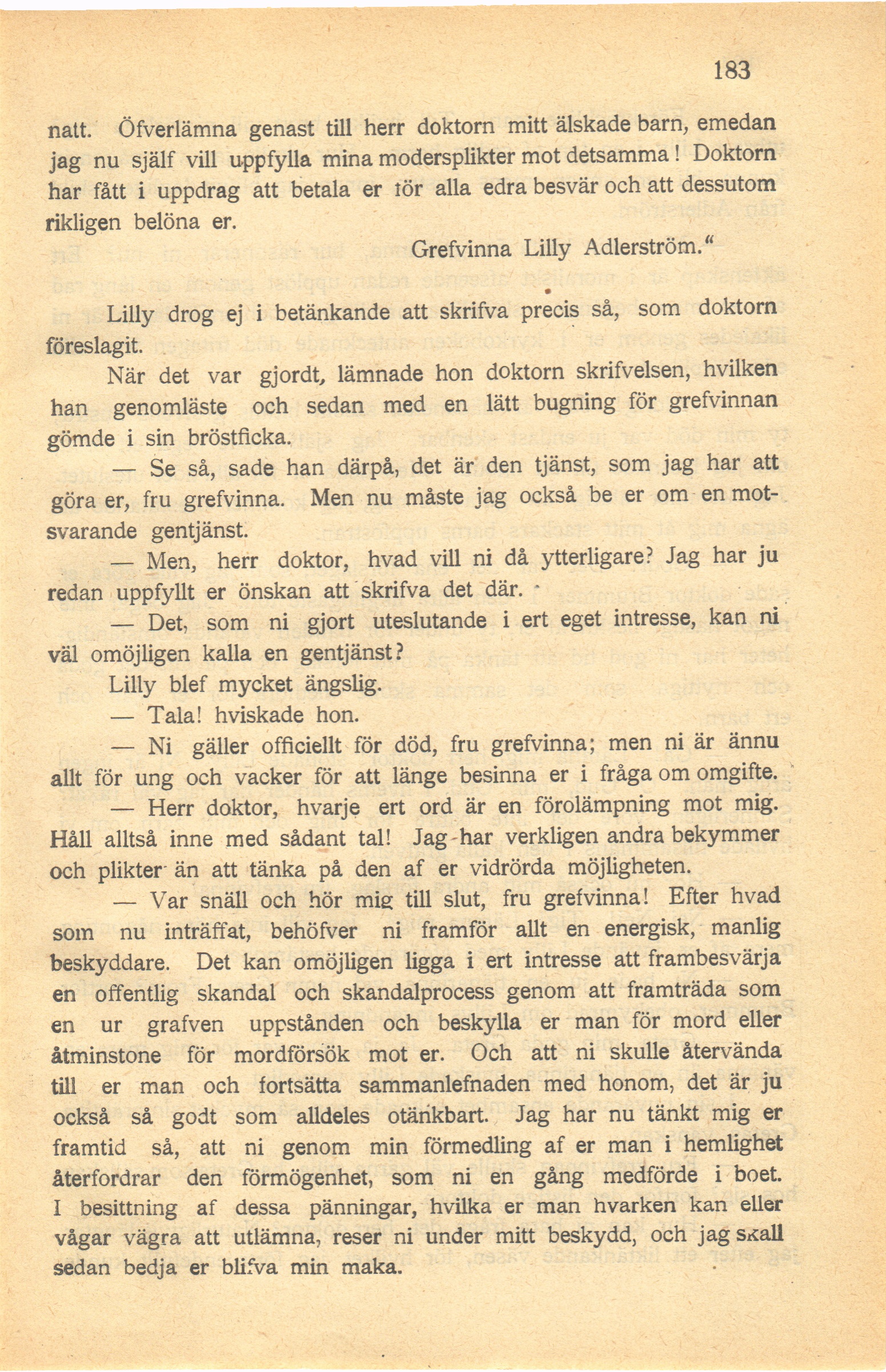 När det var gjordt, lämnade hon doktorn skrifvelsen, hvilken