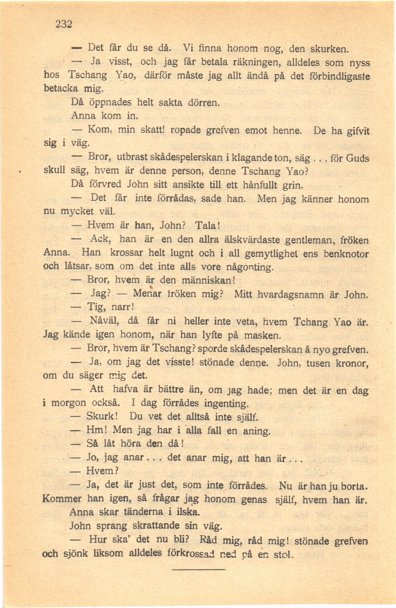 — Nåväl, då får ni heller inte veta, hvem Tchang Yao är.