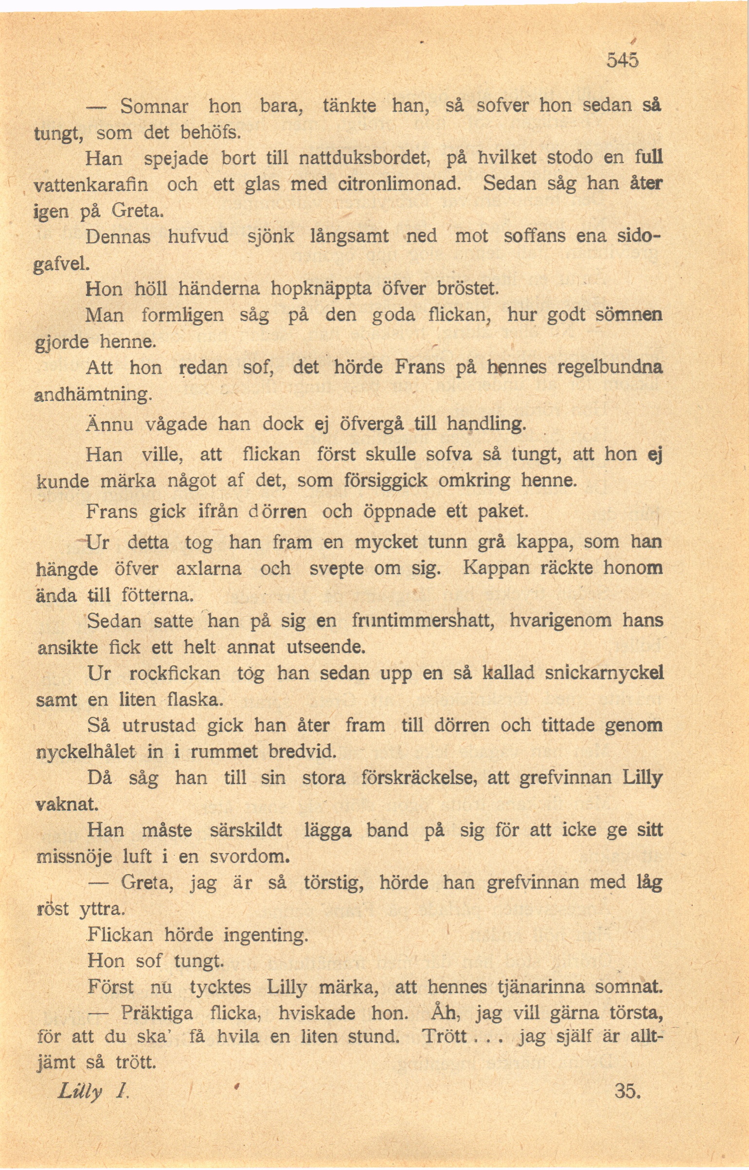 Först nü tycktes Lilly märka, att hennes tjänarinna somnat.