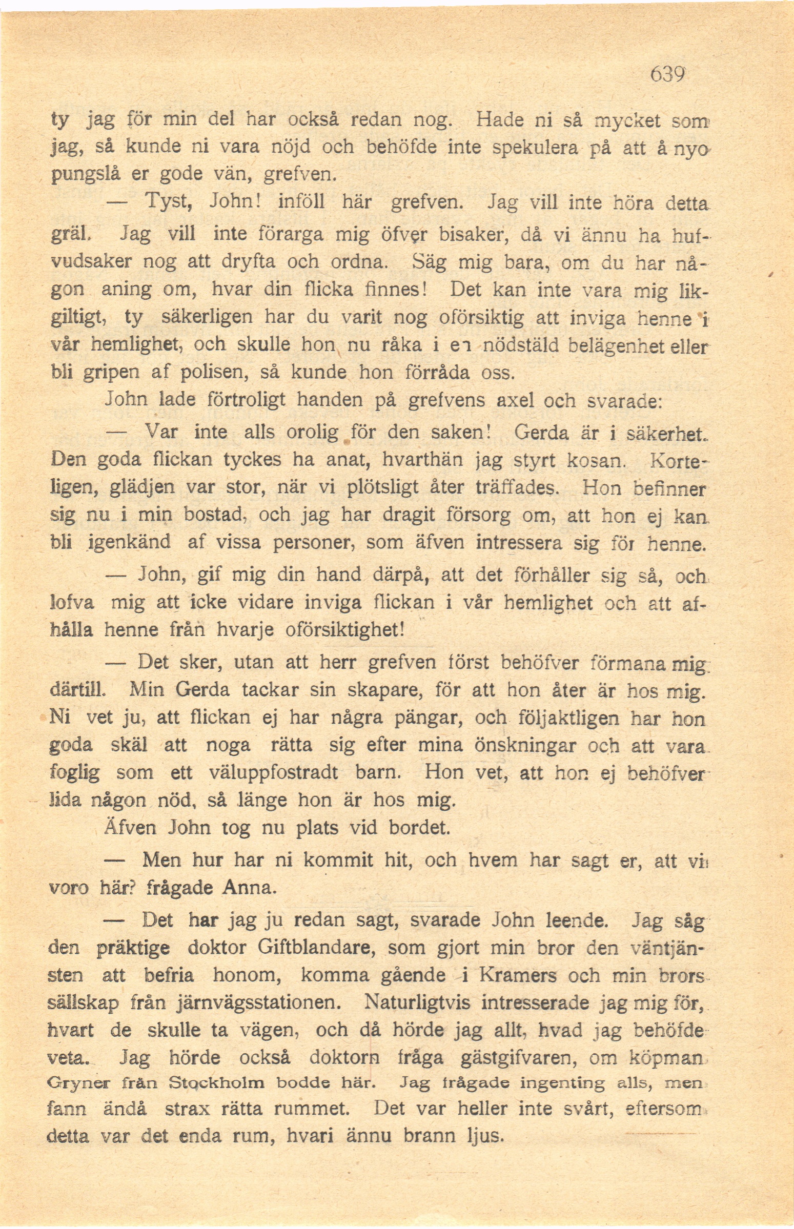 — Tyst, John! inföll här grefven. Jag vill inte höra detta
