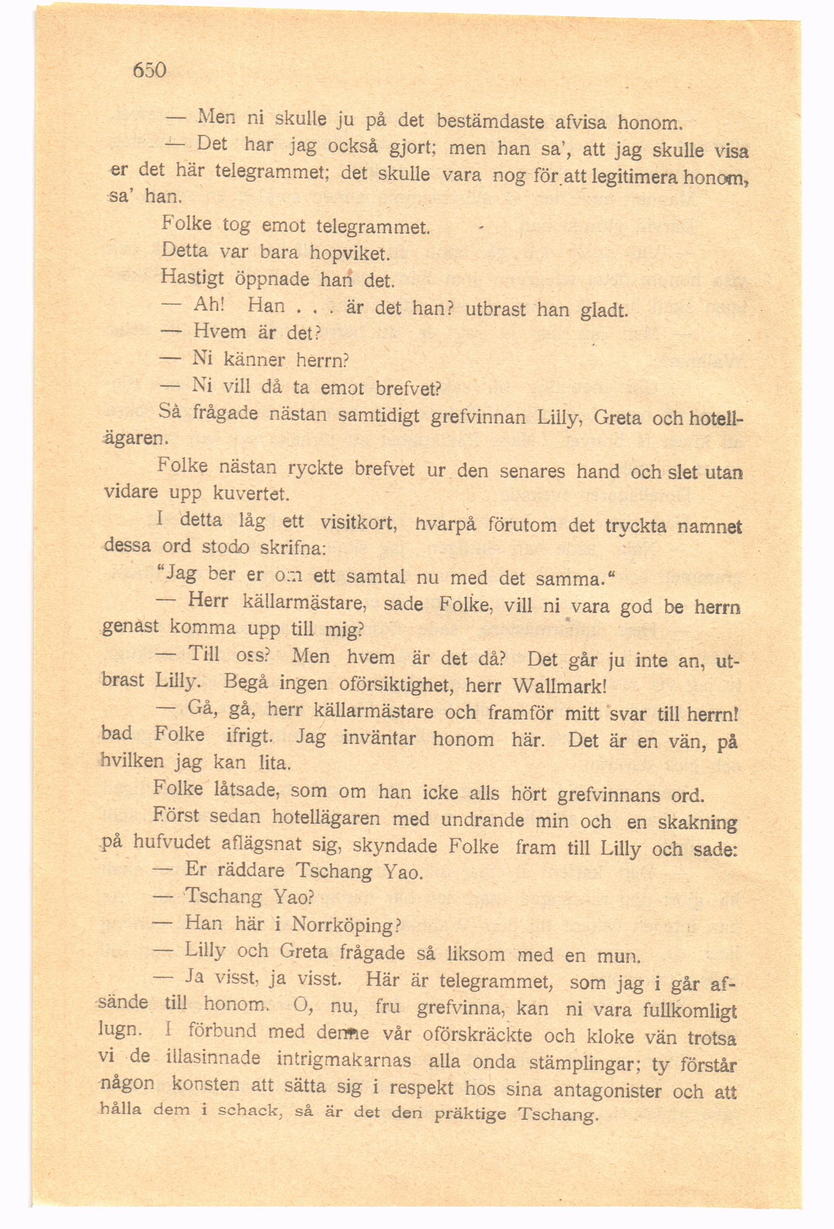 — Ja visst, ja visst. Här är telegrammet, som jag i går