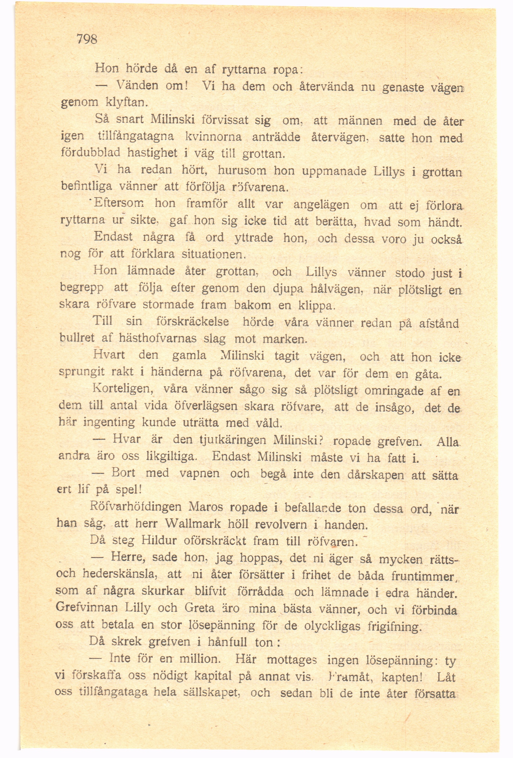 ryttarna ur sikte- gaf hon sig icke tid att berätta, hvad som händt.