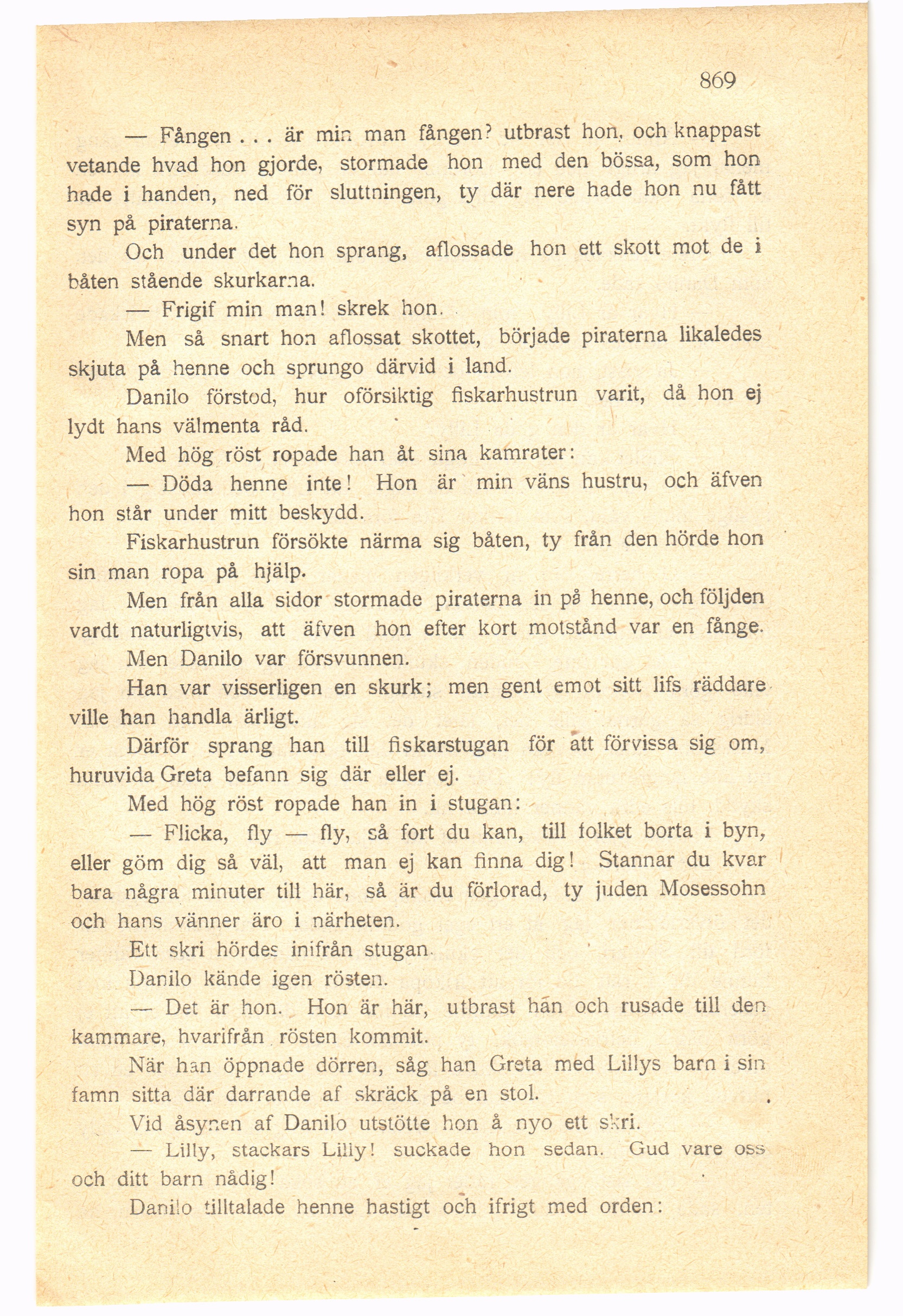 — Döda henne inte! Hon är min väns hustru, och äfven
