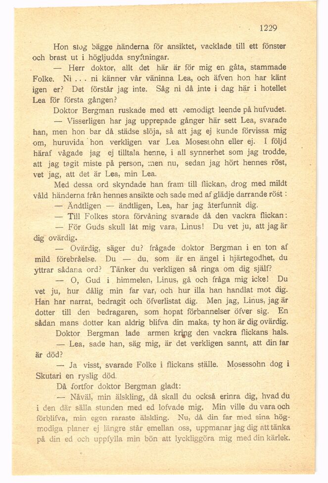 — Ovärdig, säger du? frågade doktor Bergman i en ton af