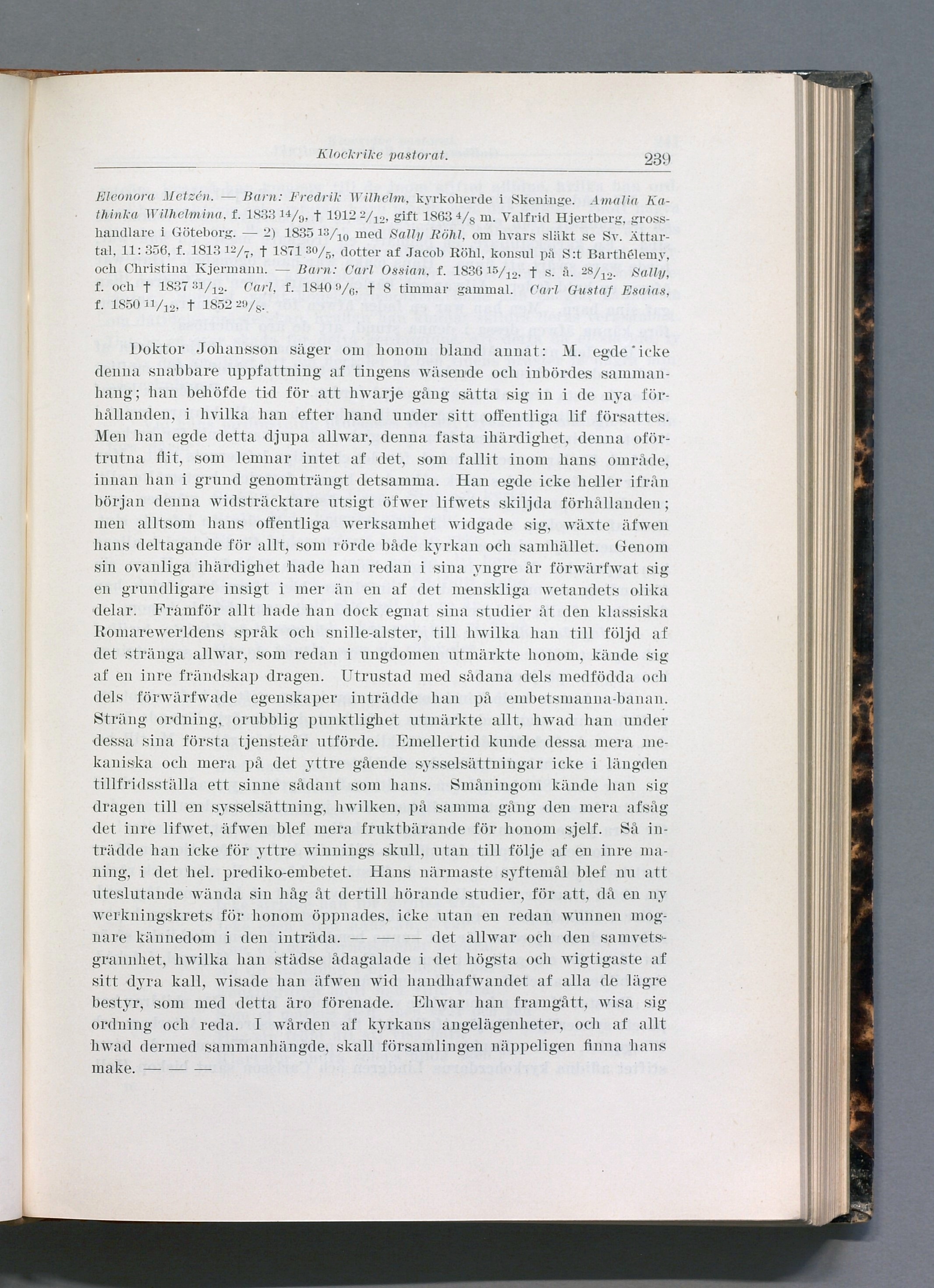 Eleonora Meteén. — Barn: Fredrik Wilhelm, kyrkoherde i Skenmge. Amalia Ka-