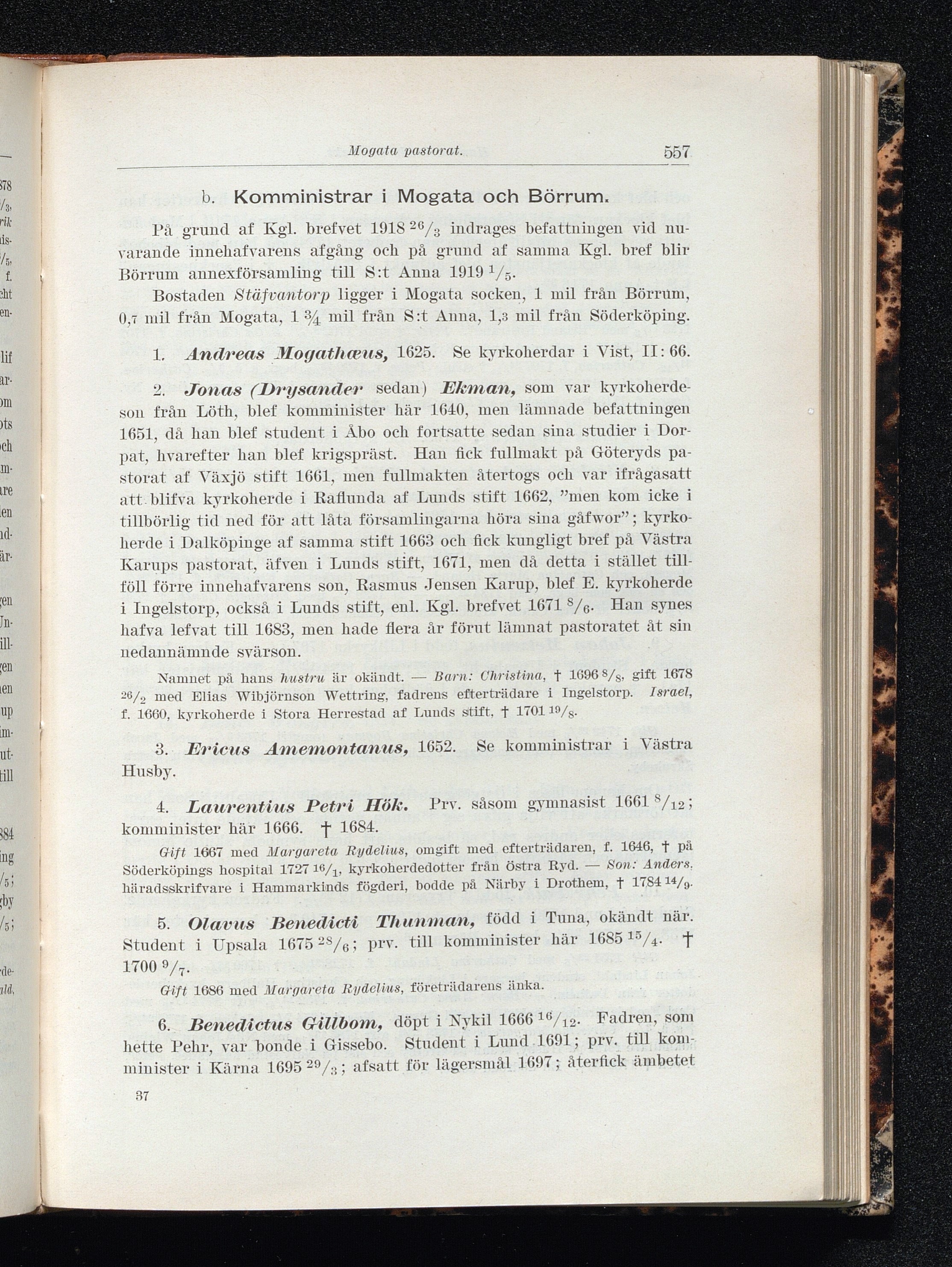 Full resolution (JPEG) - On this page / på denna sida - IX. Hammarkinds kontrakt - 2. Mogata pastorat - b. Komministrar i Mogata och Börrum