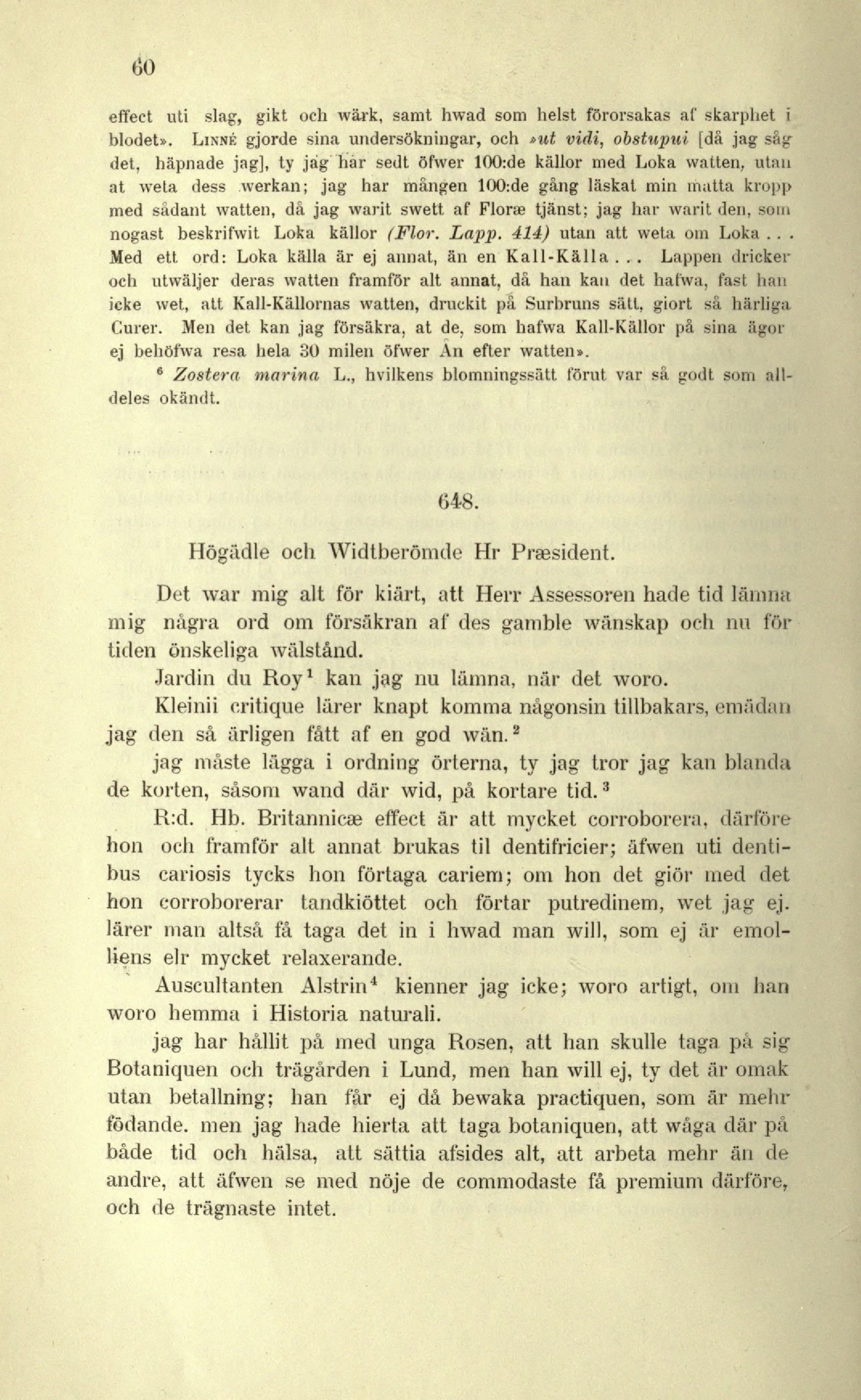 Auscultanten Alstrin4 kienner jag icke; woro artigt, om han