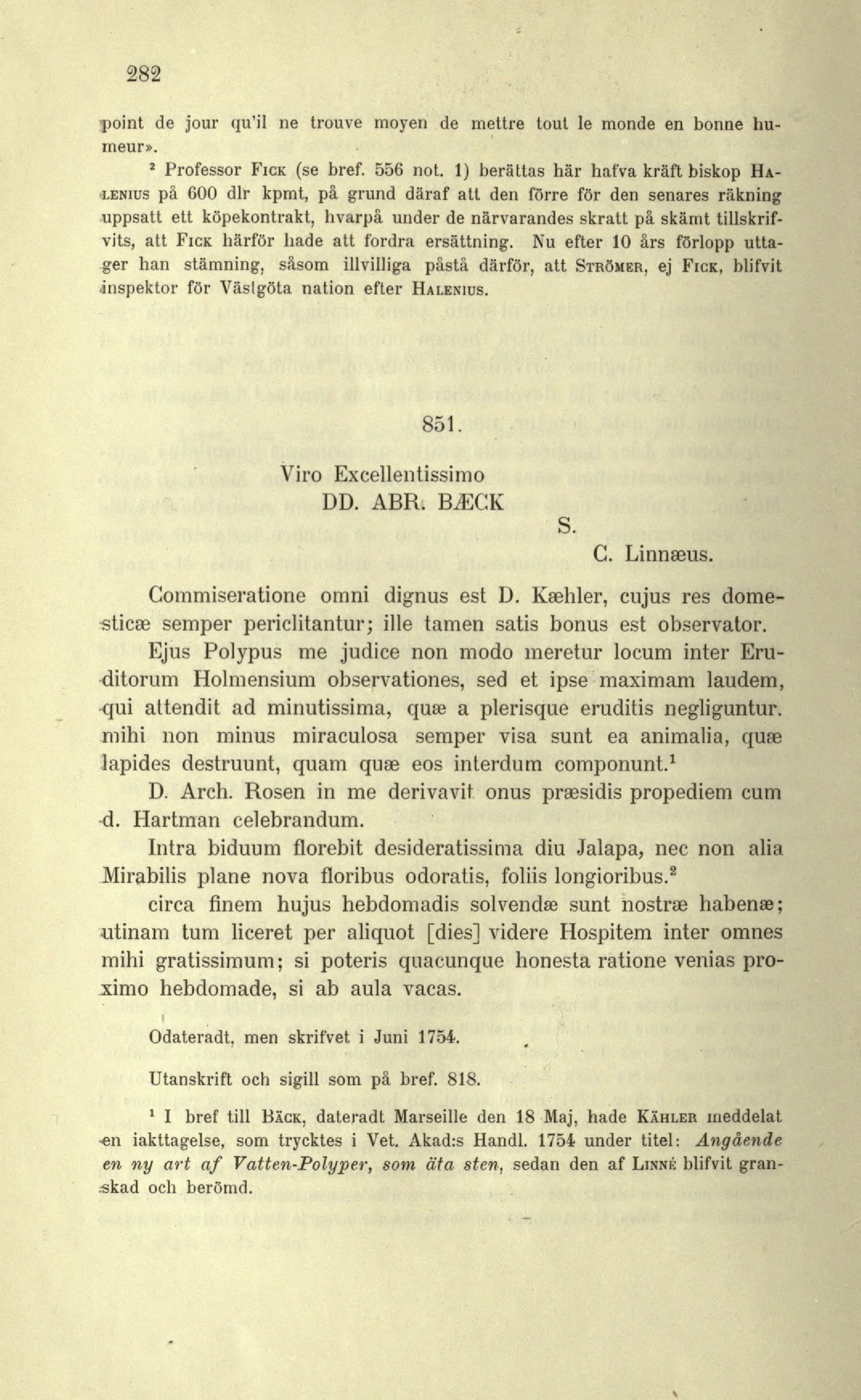 1 I bref till Bäck, dateradt Marseille den 18 Maj, hade KXhler meddelat