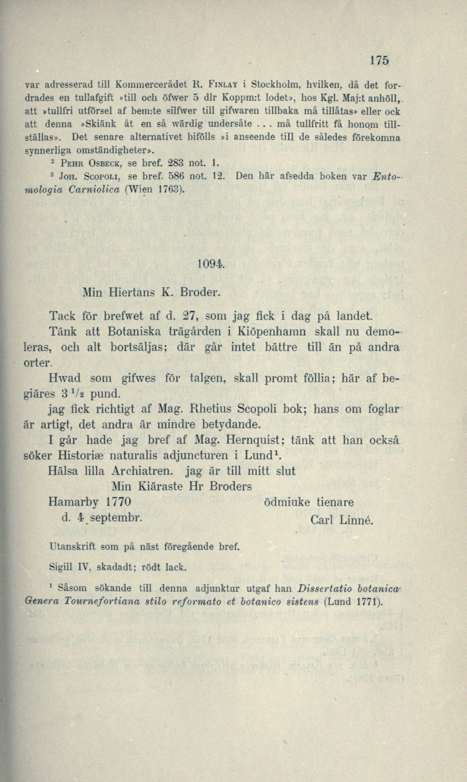 3 Joh. Scopoli, se bref. 586 not. 12. Den här afsedda boken var