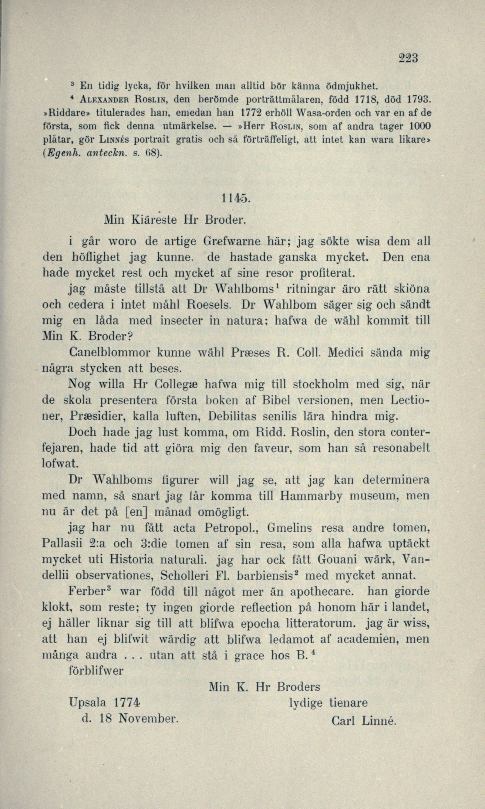 första, som fick denna utmärkelse. — »Herr Roslin, som af andra tager 1000