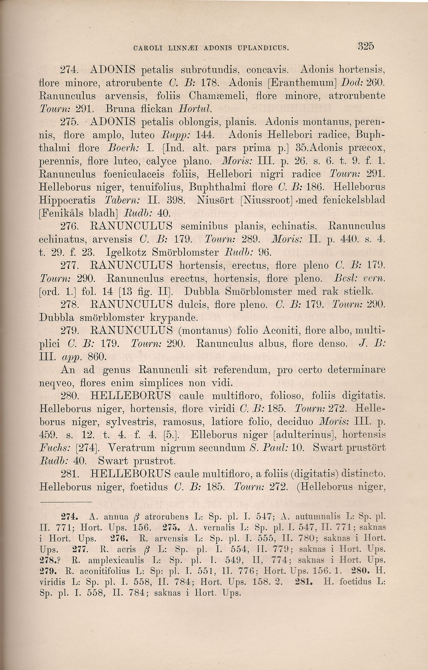 279. R. aconitifolius L: Sp: pl. I. 551, II. 776; Hört. Ups. 156.1. 280. H.