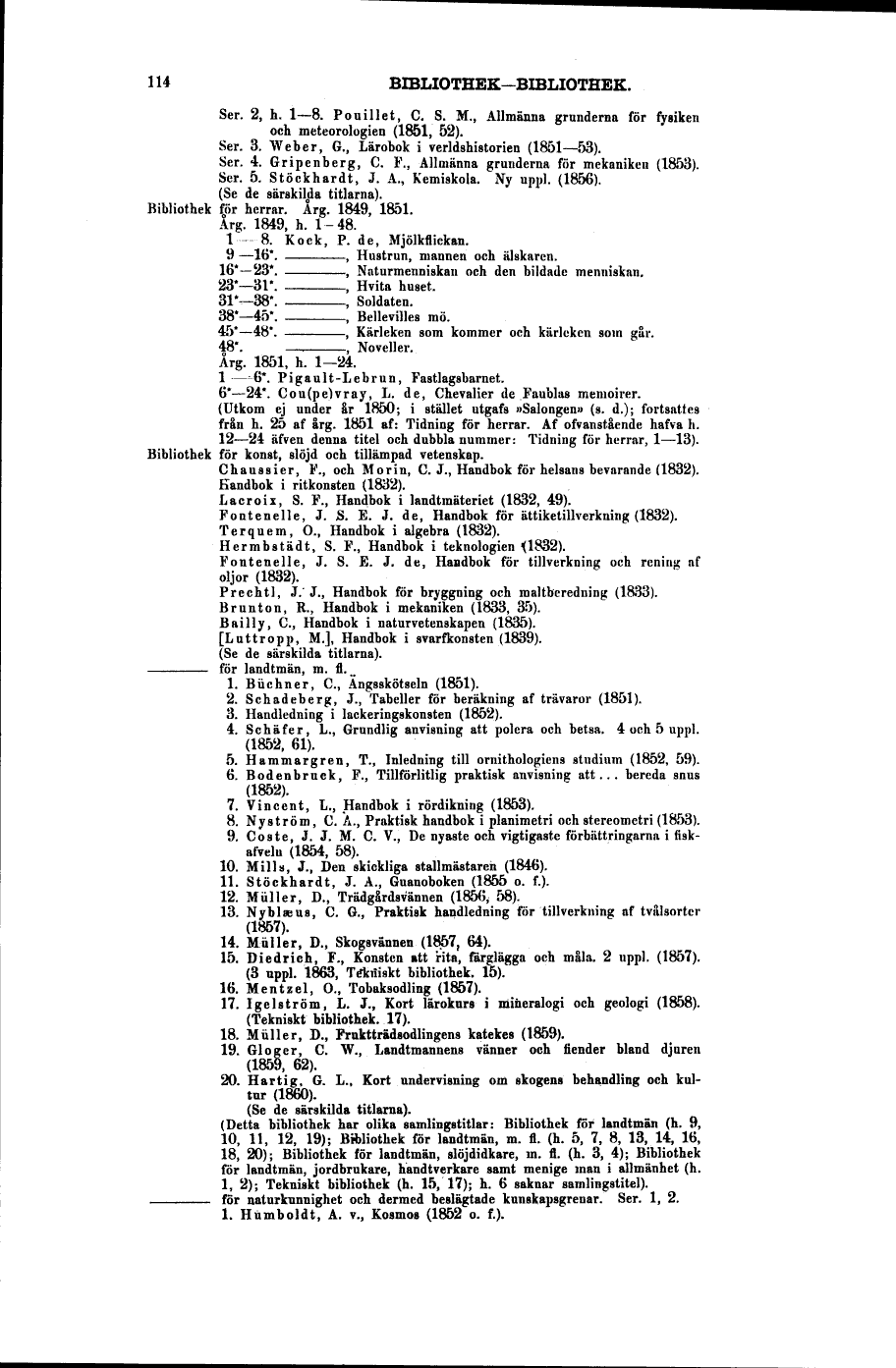 18, 20); Bibliothek för landtman, slöjdidkare, in. fl. (h. 3, 4); Bibliothek