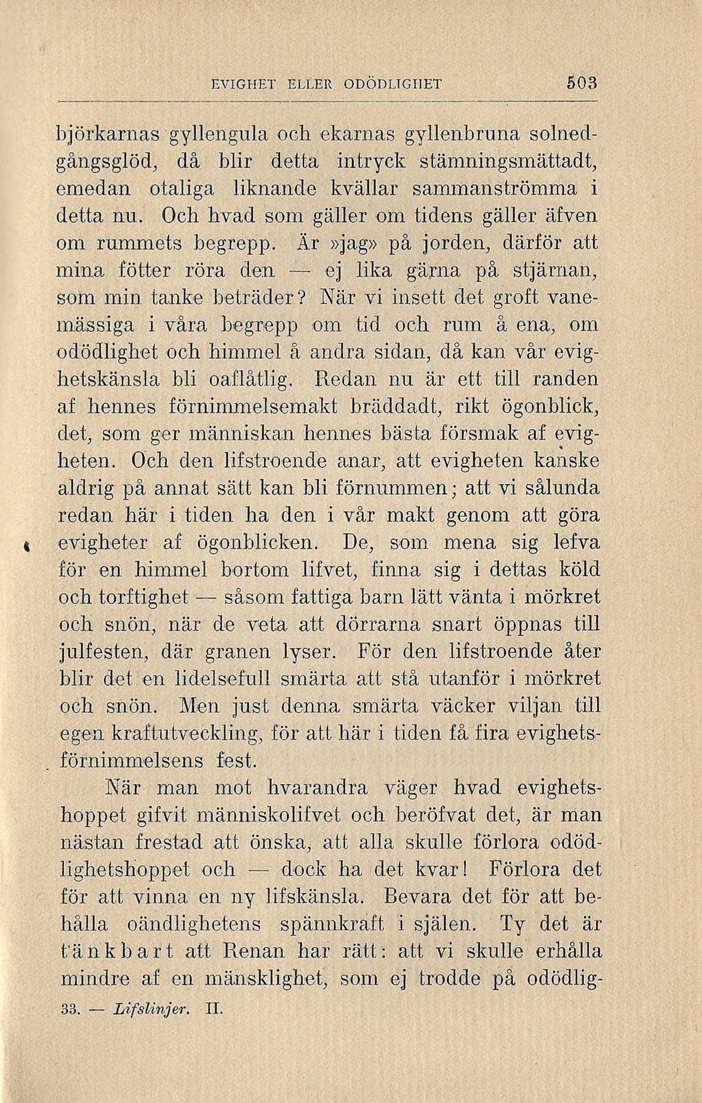 evigheten. Och den lifstroende anar, att evigheten kanske