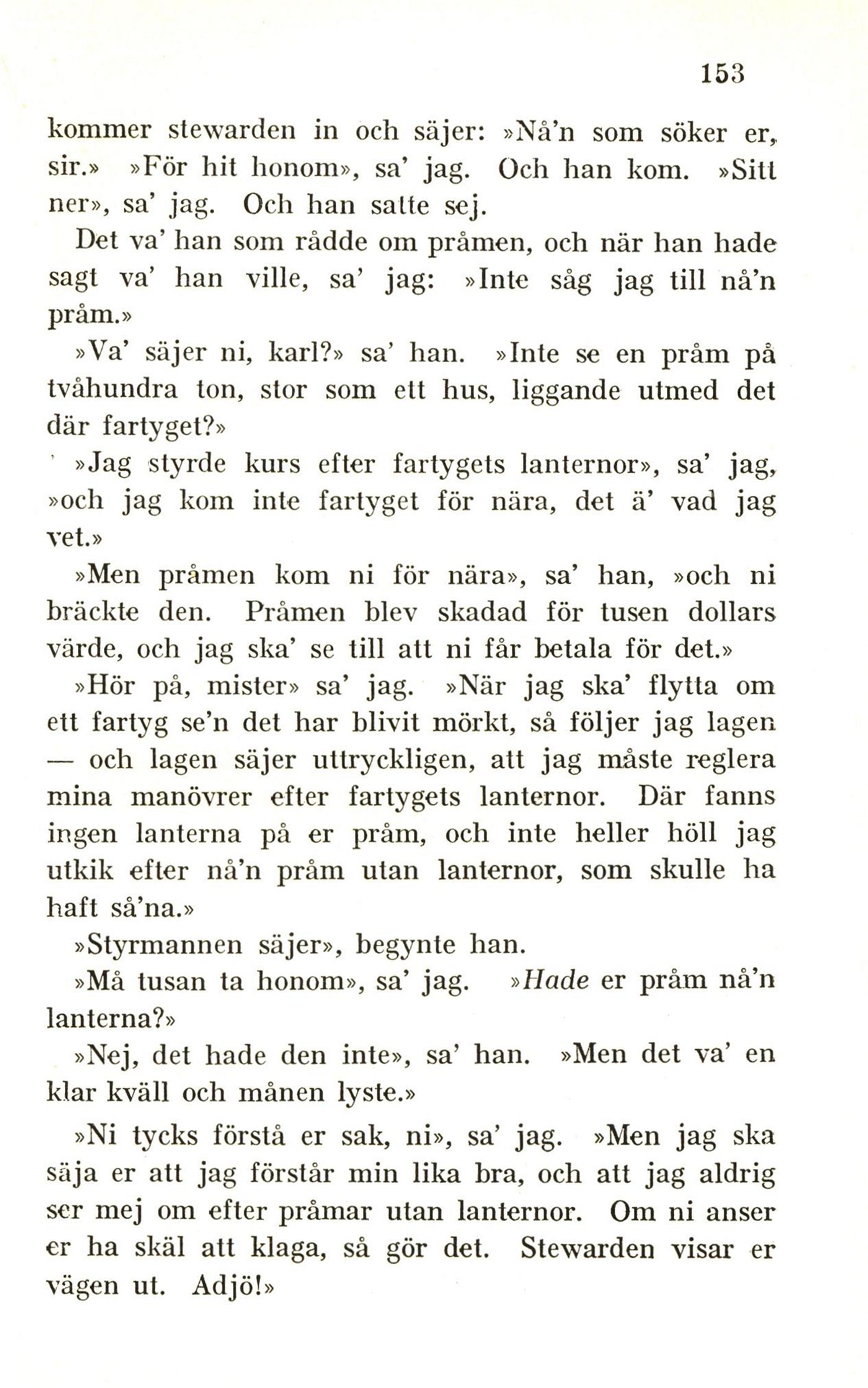 »Må tusan ta honom», sa’ jag. »Hade er pråm nå’n
