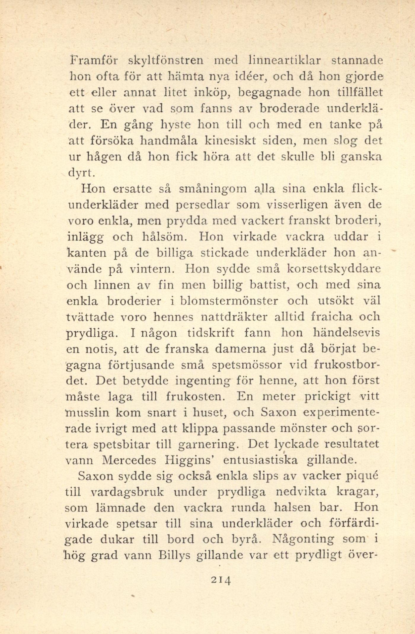 underkläder. En gång hyste hon till och med en tanke på
