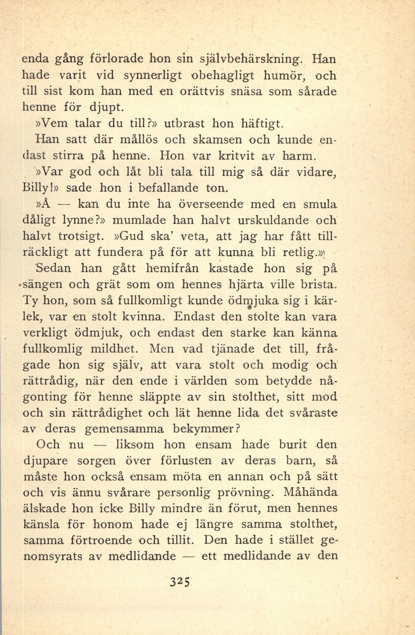älskade hon icke Billy mindre än förut, men hennes