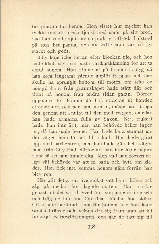 Billy ko,m icke förrän efter klockan nio, och hon