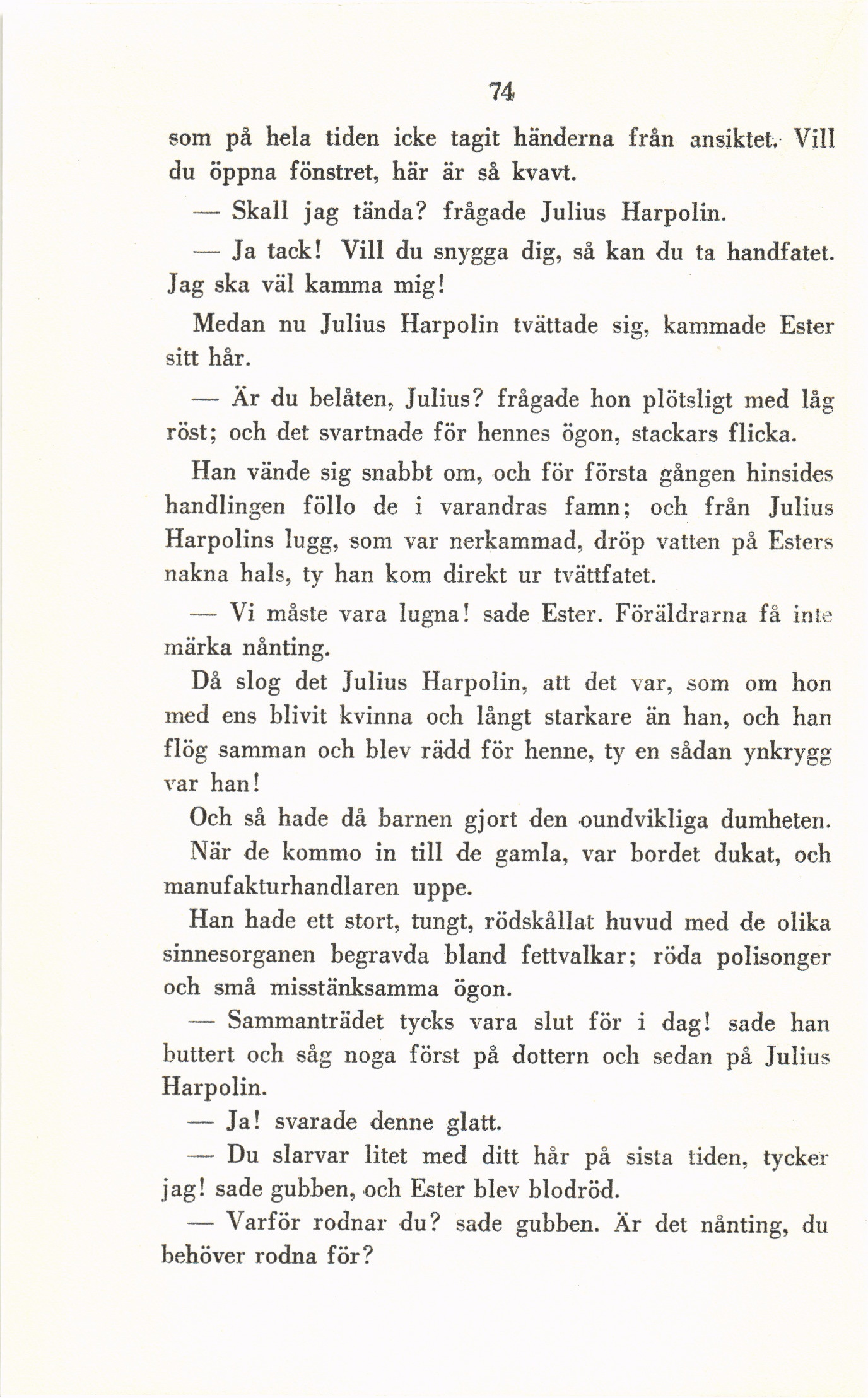Medan nu Julius Harpolin tvättade sig. kammade Ester