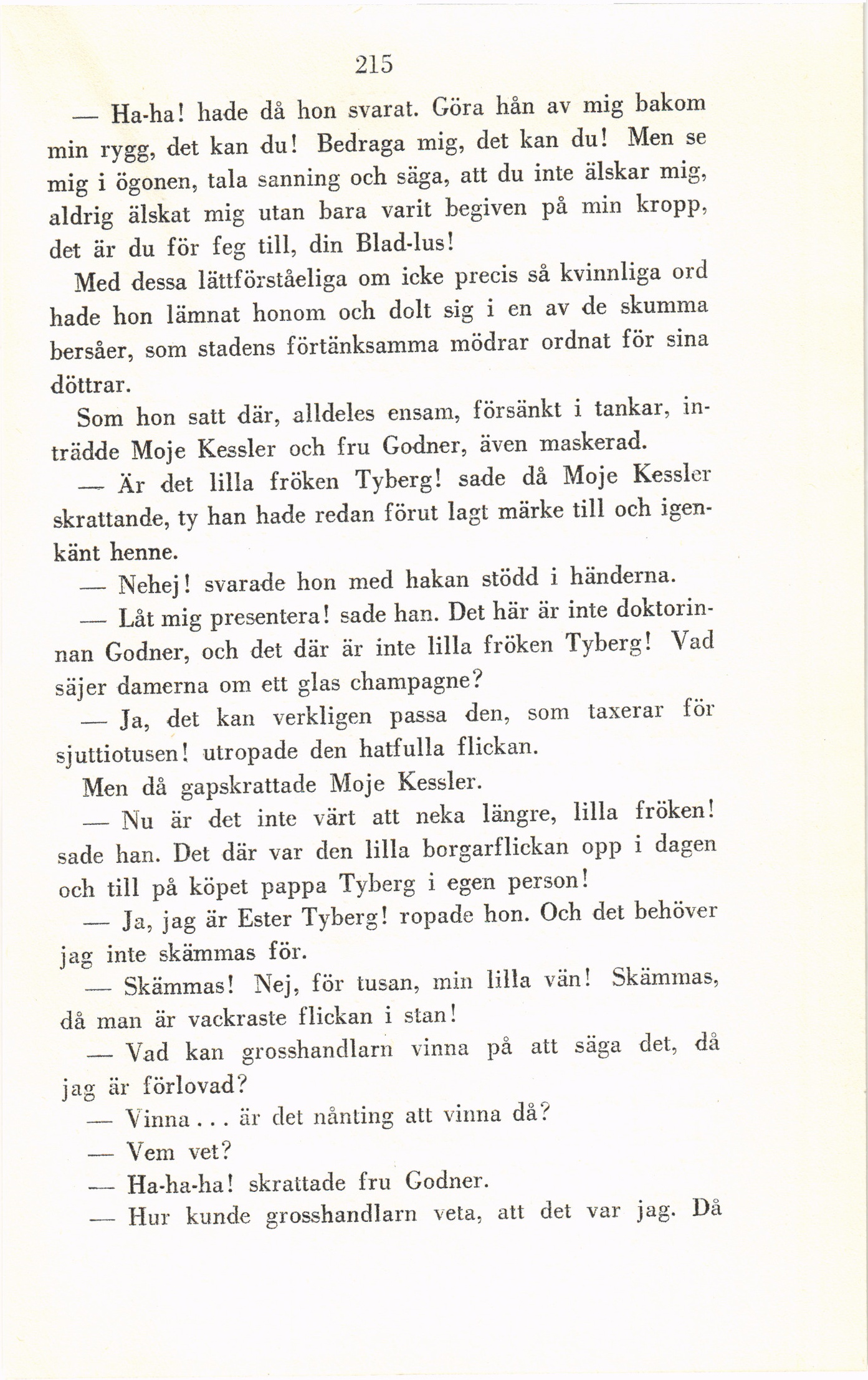 — Ha-ha! hade då hon svarat. Göra hån av mig bakom