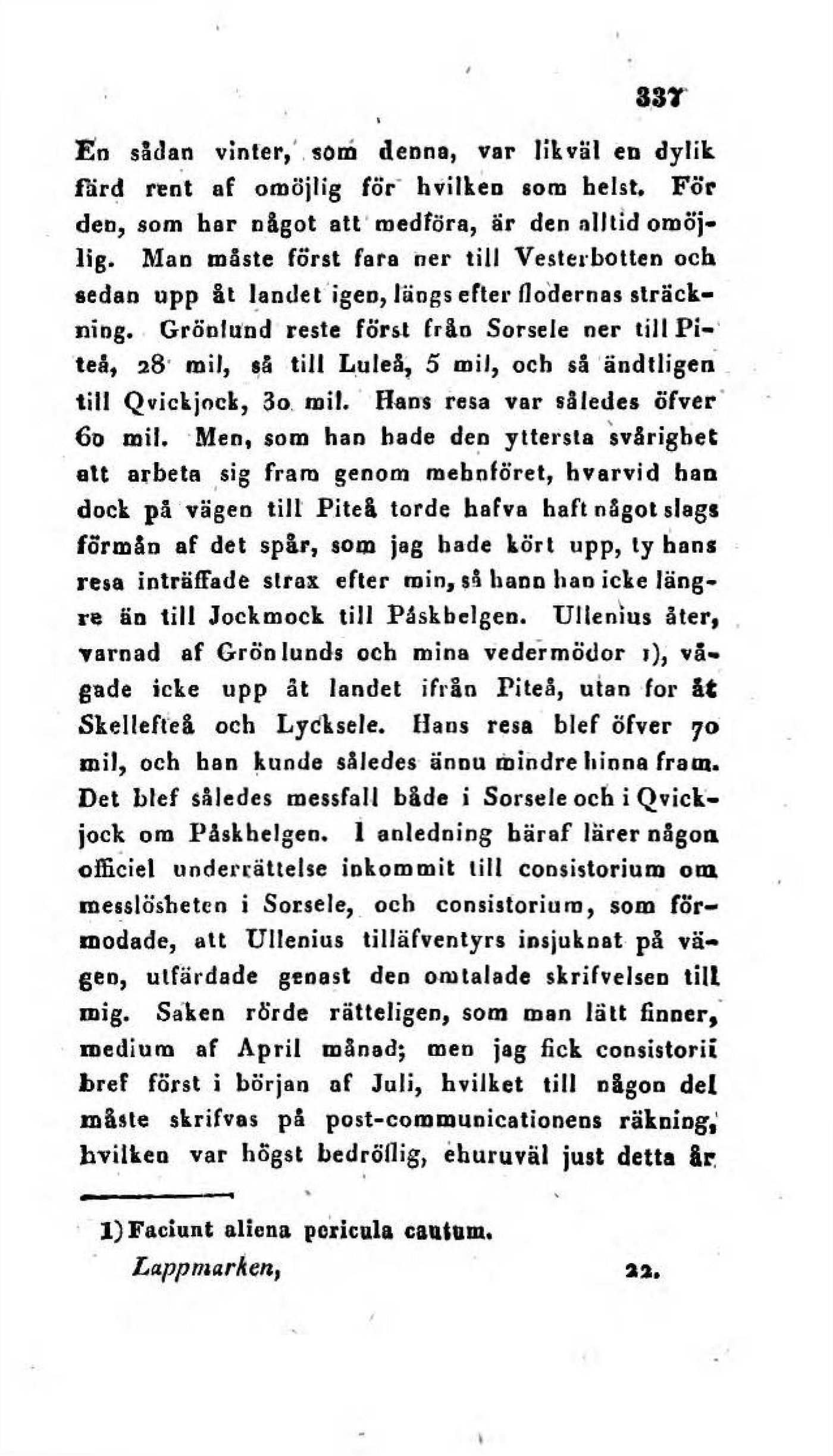 till Qvickjock, 3o mil. Hans resa var således öfver
