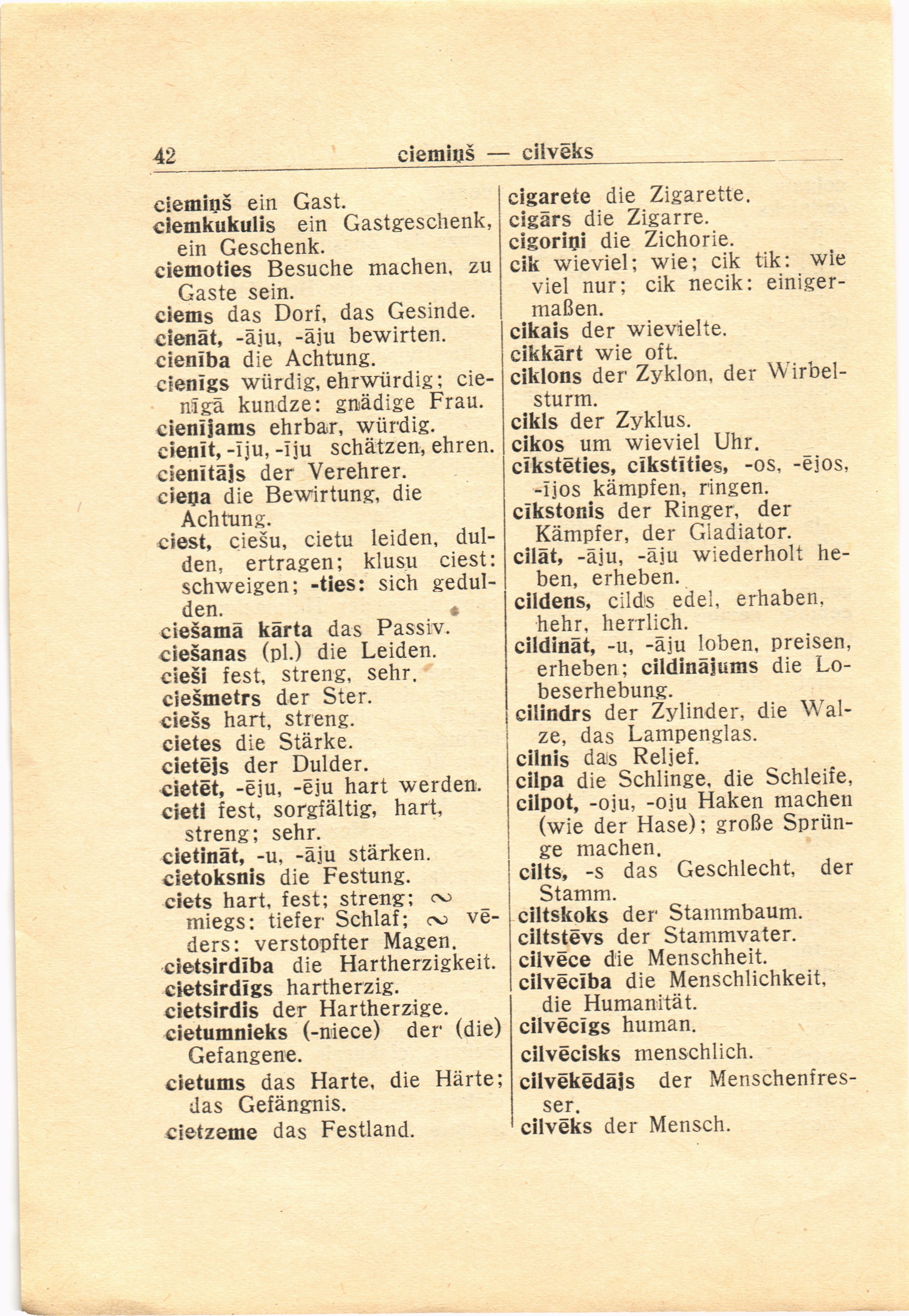 cilvēks der Mensch.