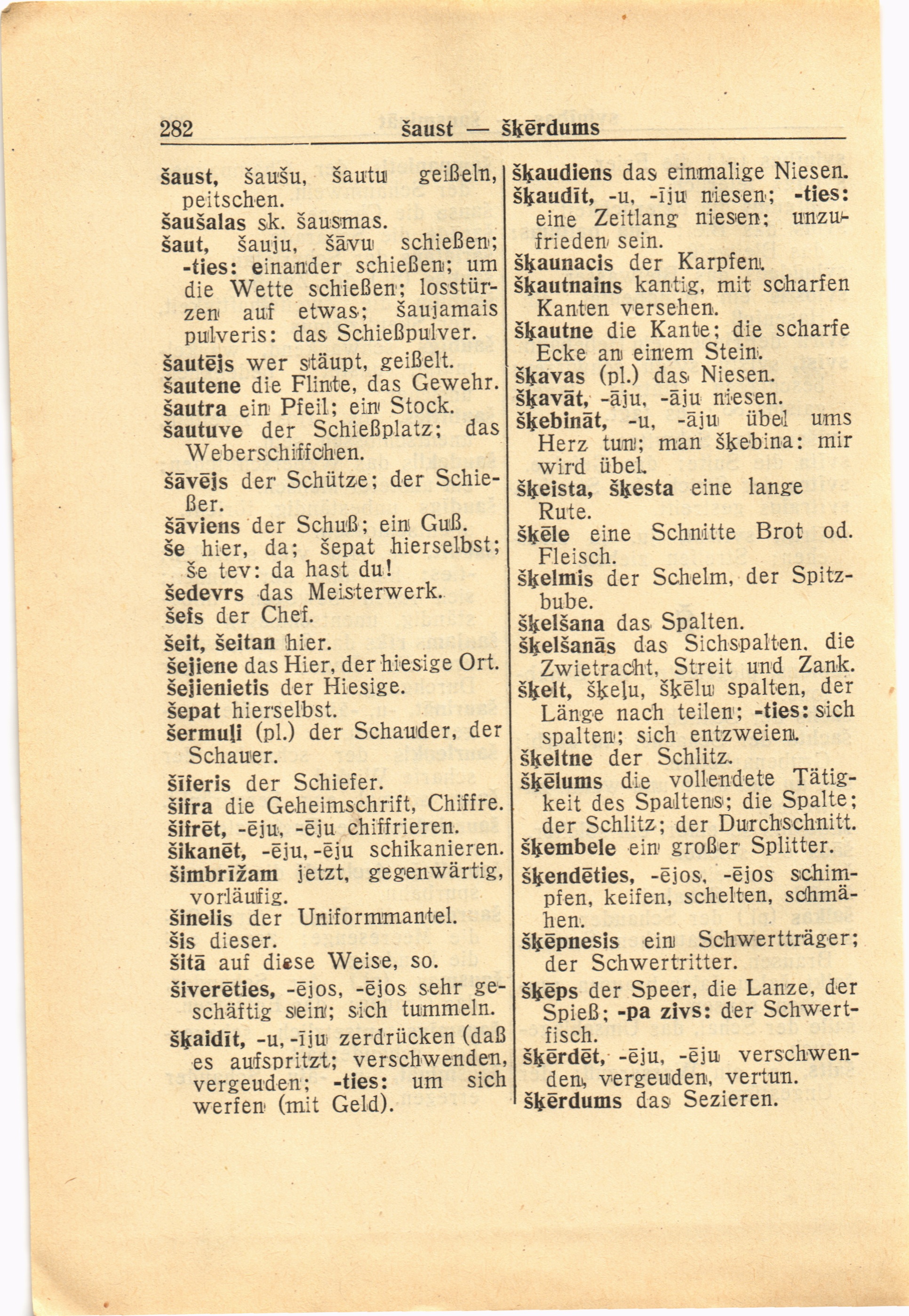 šķelt, šķeļu, šķeļu spalten, der
